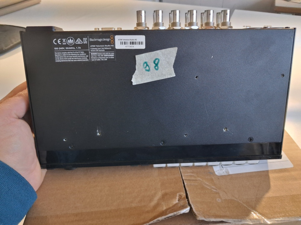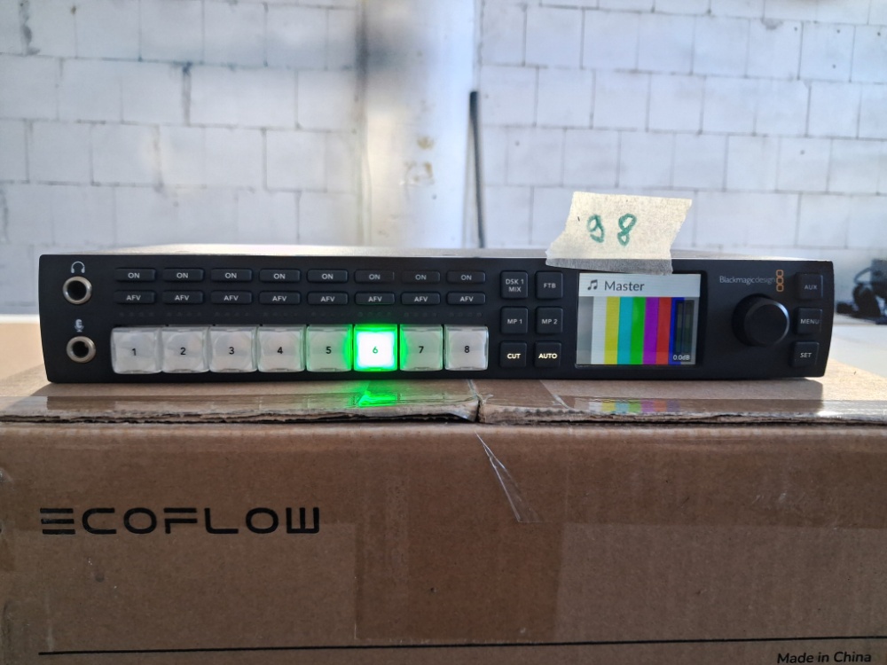 Verkaufe meinen zuverlässigen Blackmagic Design ATEM Television Studio HD Live-Produktionsmischer. Das Gerät befindet sich technisch in einem einwandfreien Zustand (siehe Testbild auf dem Display) und weist nur minimale Gebrauchsspuren auf.