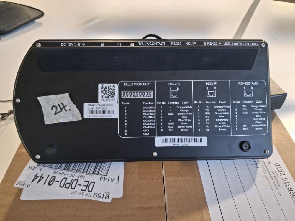 Zum Verkauf steht ein BirdDog PTZ Keyboard Controller in sehr gutem Zustand. Das Gerät ist die ideale Lösung für Livestreaming, Konferenztechnik oder Studio-Produktionen, um PTZ-Kameras präzise und intuitiv zu steuern.