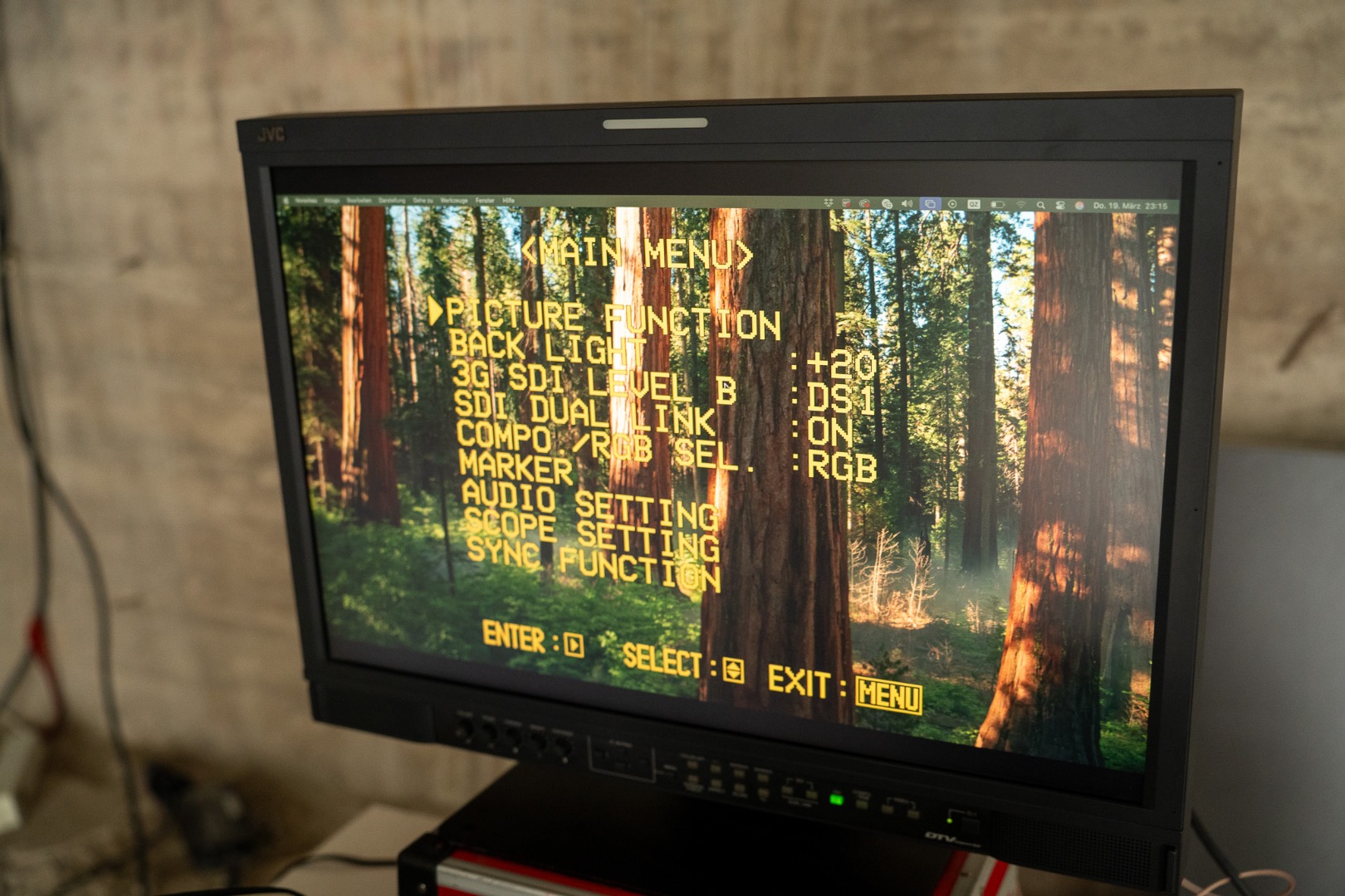 Der Monitor wurde im professionellen Umfeld genutzt und ist voll funktionsfähig – wie man auch auf den letzten Bildern sehen kann.