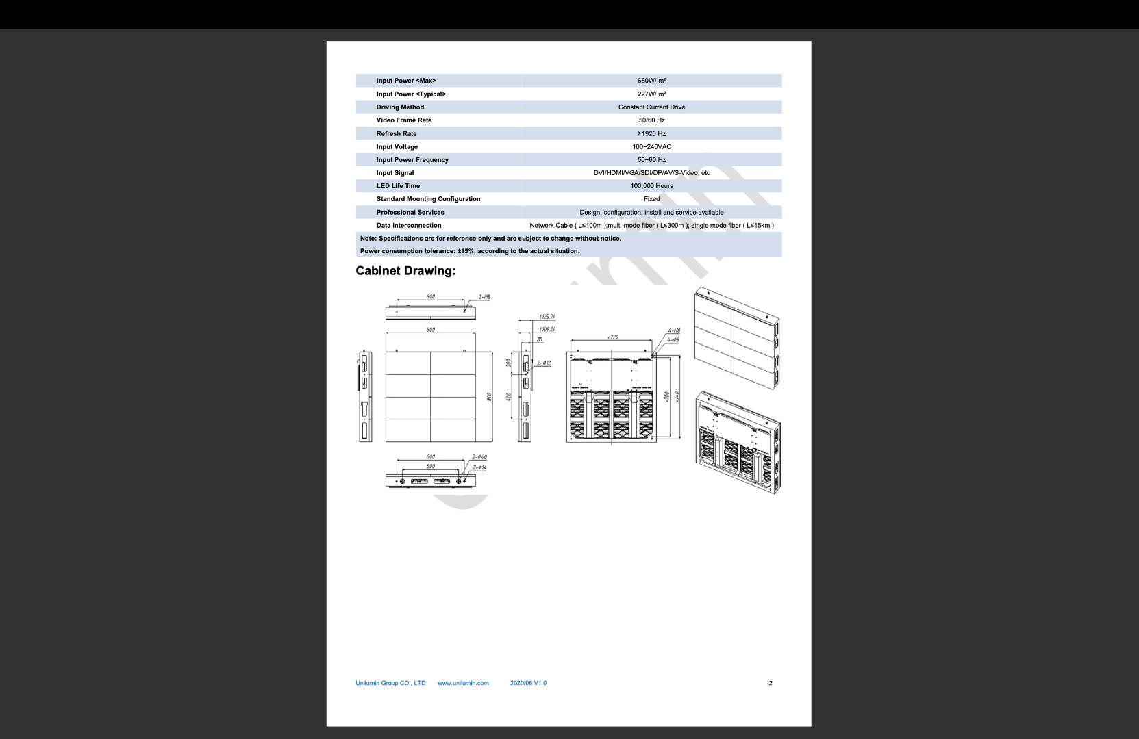 Brand/Model: Unilumin Usurface Ⅱ 10 (P10)Total Surface: 76.8 m² (120 panels total) Panel