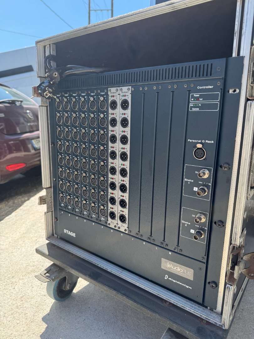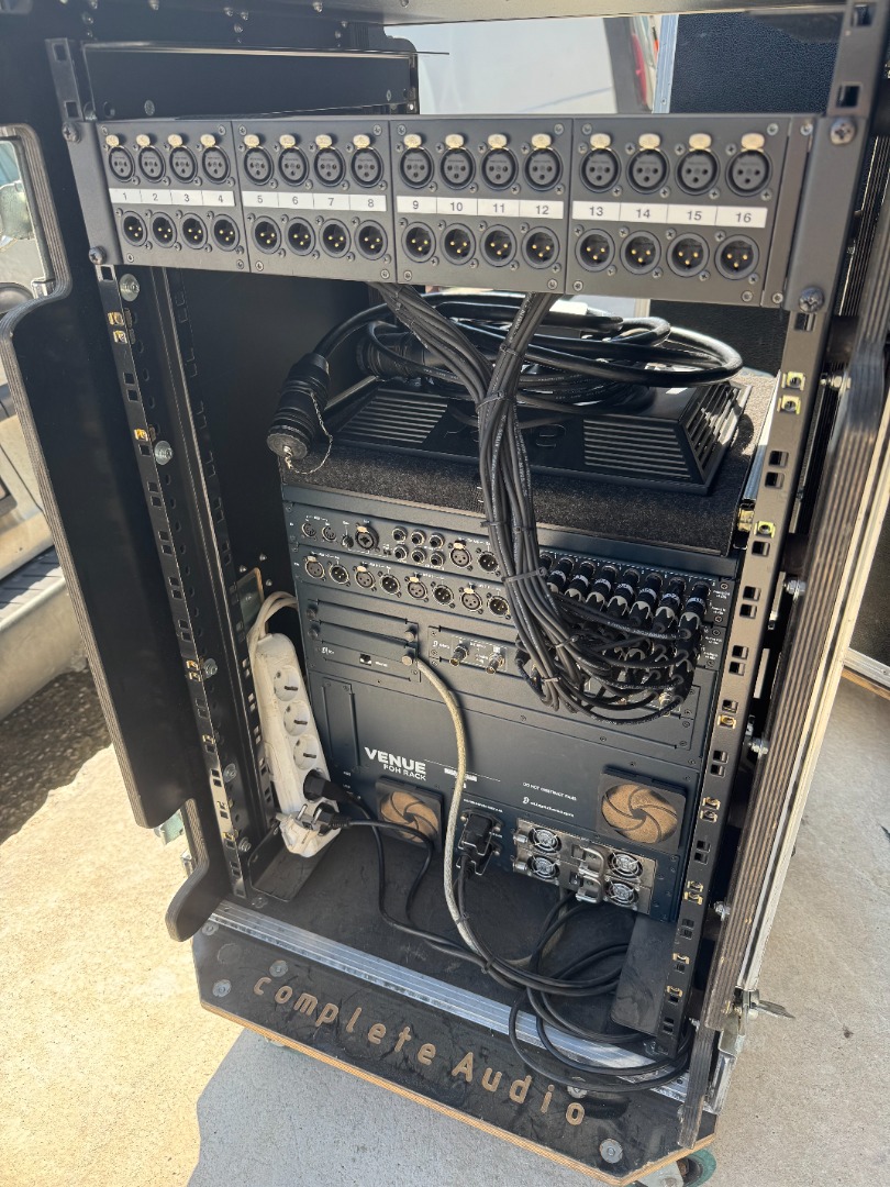 - FOH Rack, with 3 DSP cards, in Flightcase, with patch panels,