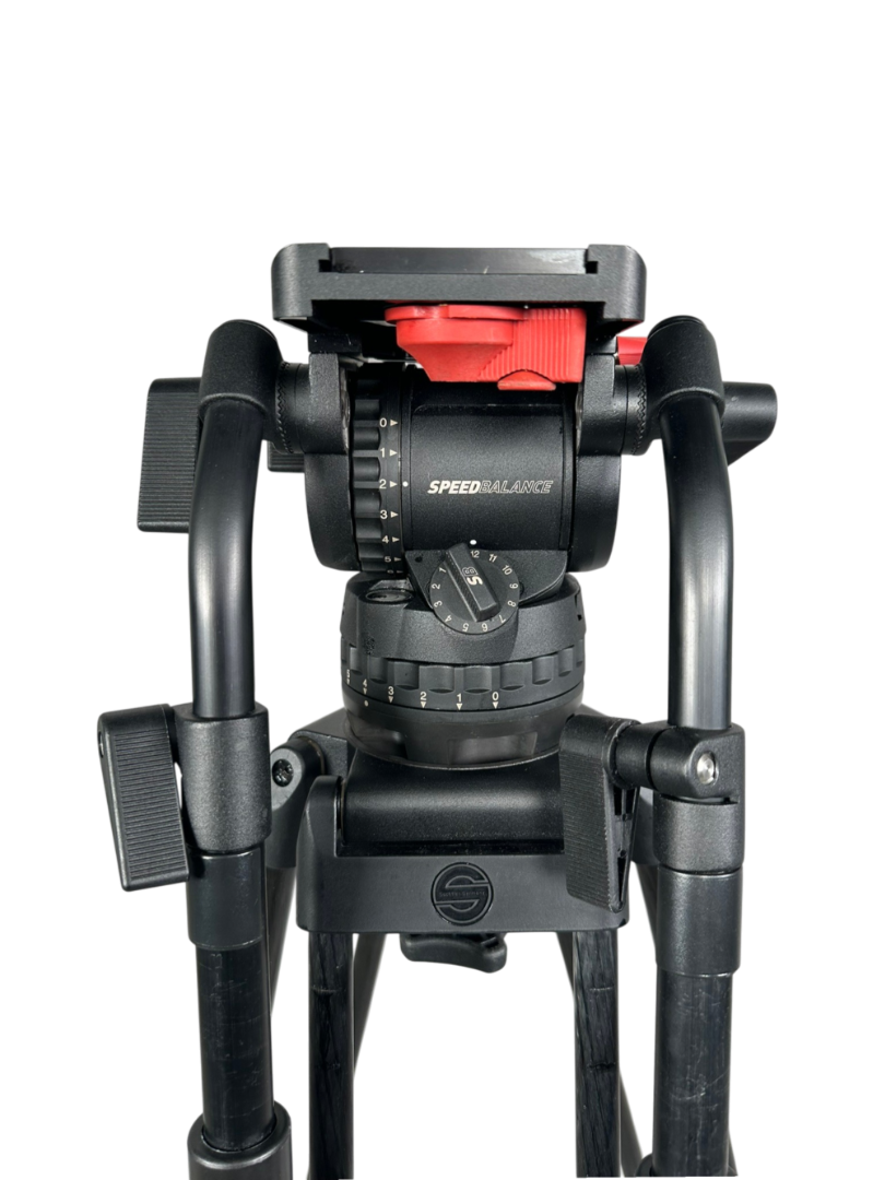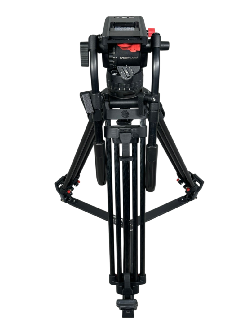 Zum Verkauf steht ein Sachtler Video-Stativsystem (ENG 2 CF), bestehend aus Fluidkopf, Carbon-Stativ, Ground Spreader, zwei Schwenkarmen und Transporttasche.
