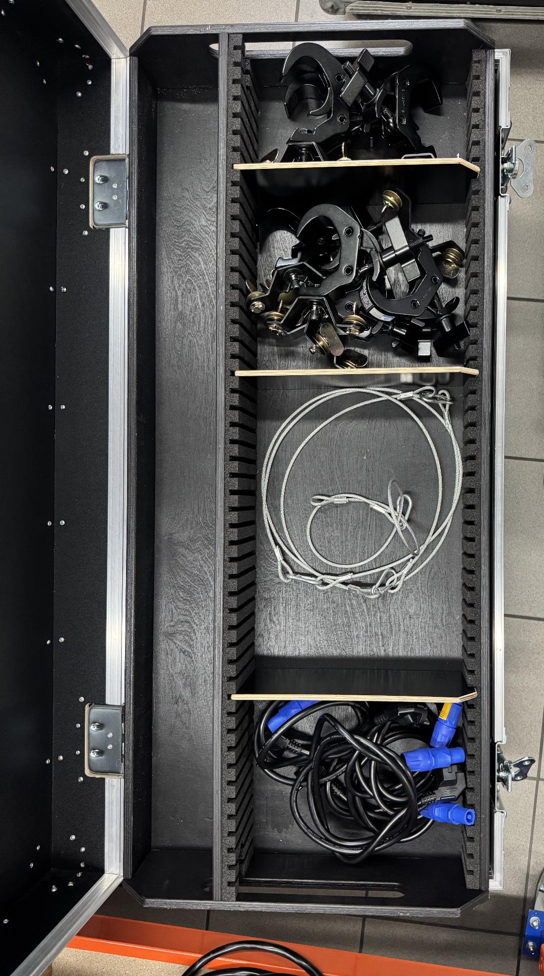 Inkl. Individuellem Case GT-Case mit Zubehörfach für z.B. Single Truss, Stromkabel, Quick-Lock Brackets und Schellen.