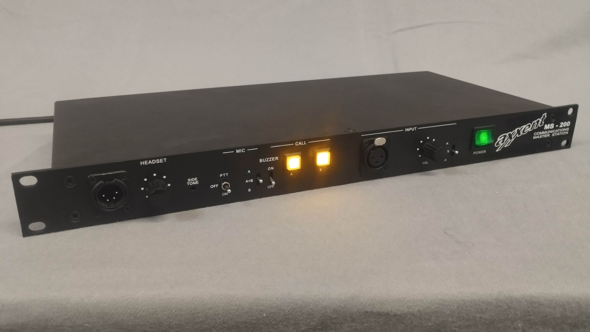 Die Master-Station MS-200 ist für zweikanalige Übertragungswege ausgelegt. Eine Hauptstation versorgt bis zu ca. 14 Beltpacks, Signalleuchten oder Lautsprecherstationen mit der erforderlichen Speisespannung.