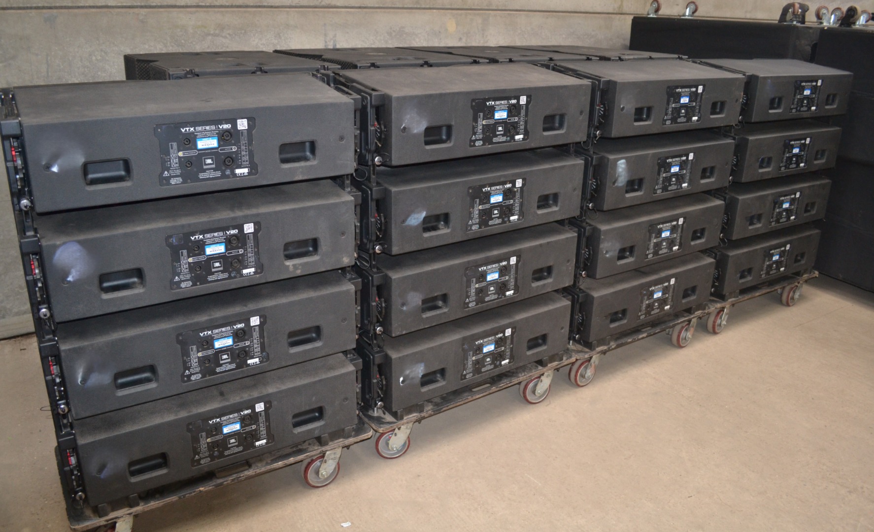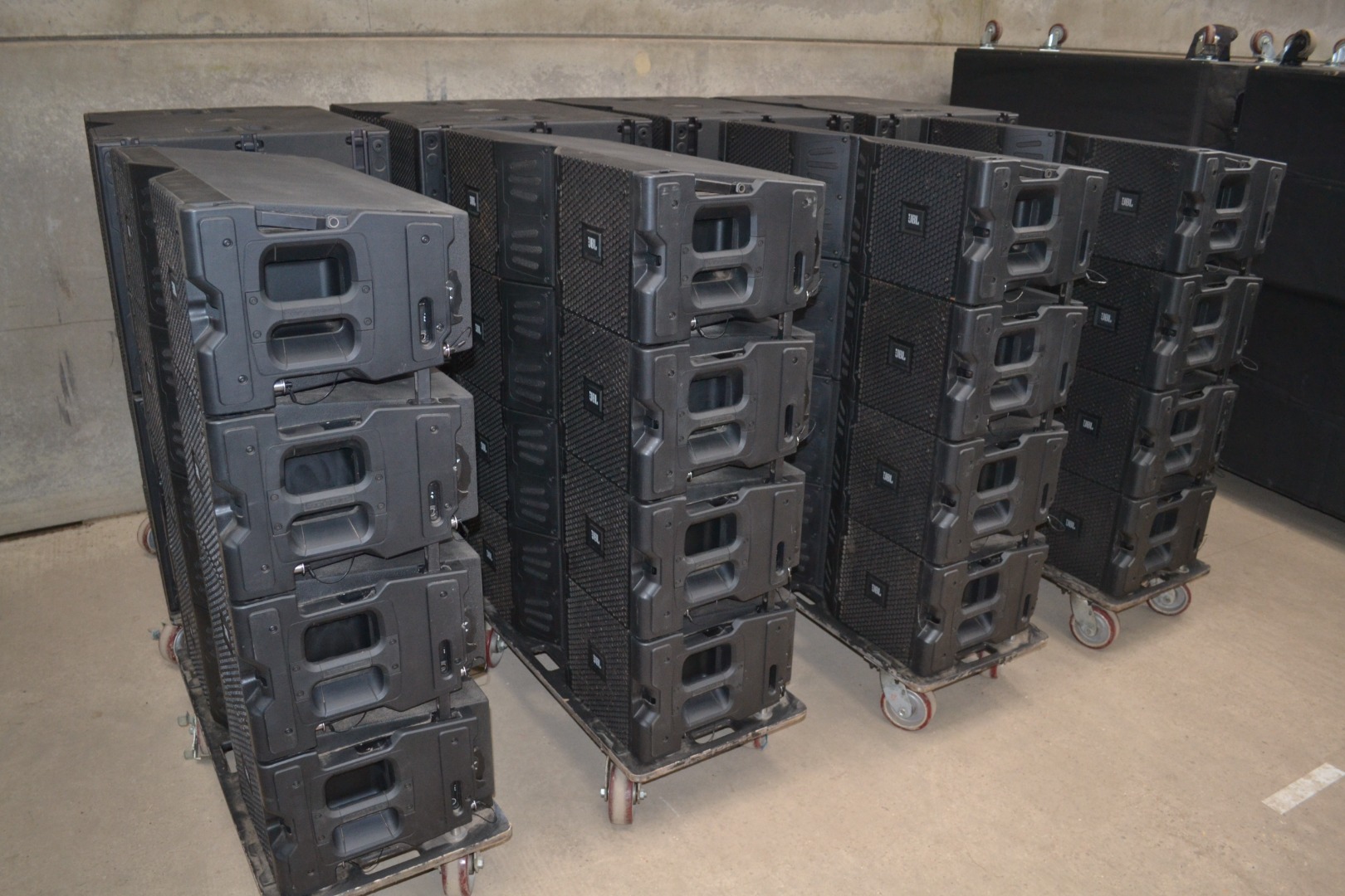 8 × S25 subwoofers, supplied on carts with covers (in pairs)