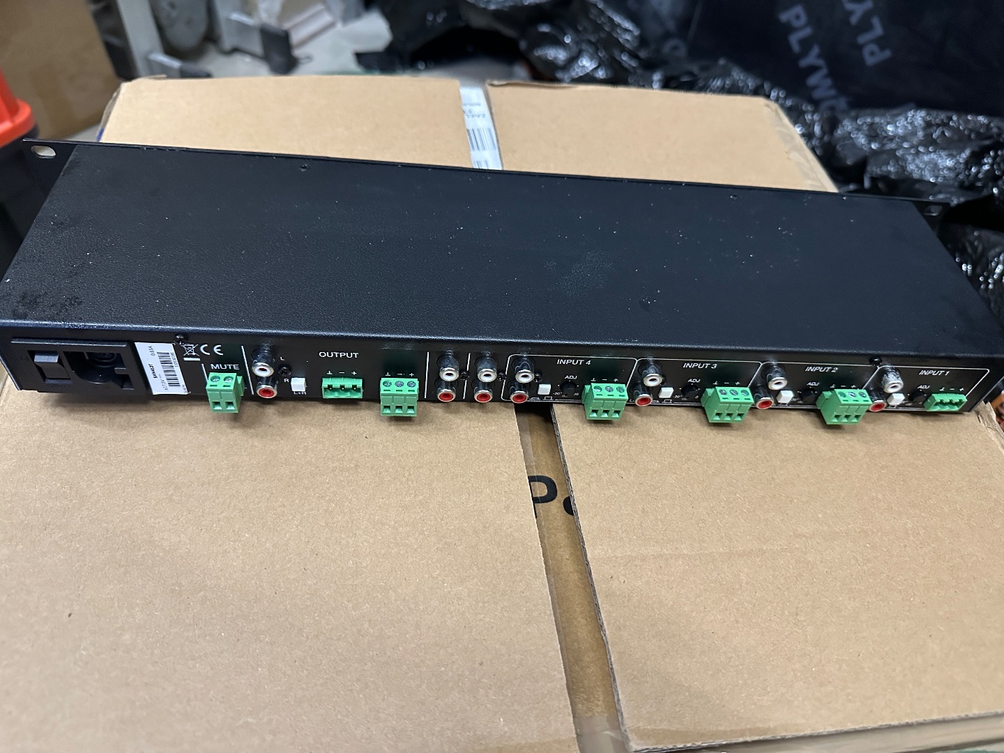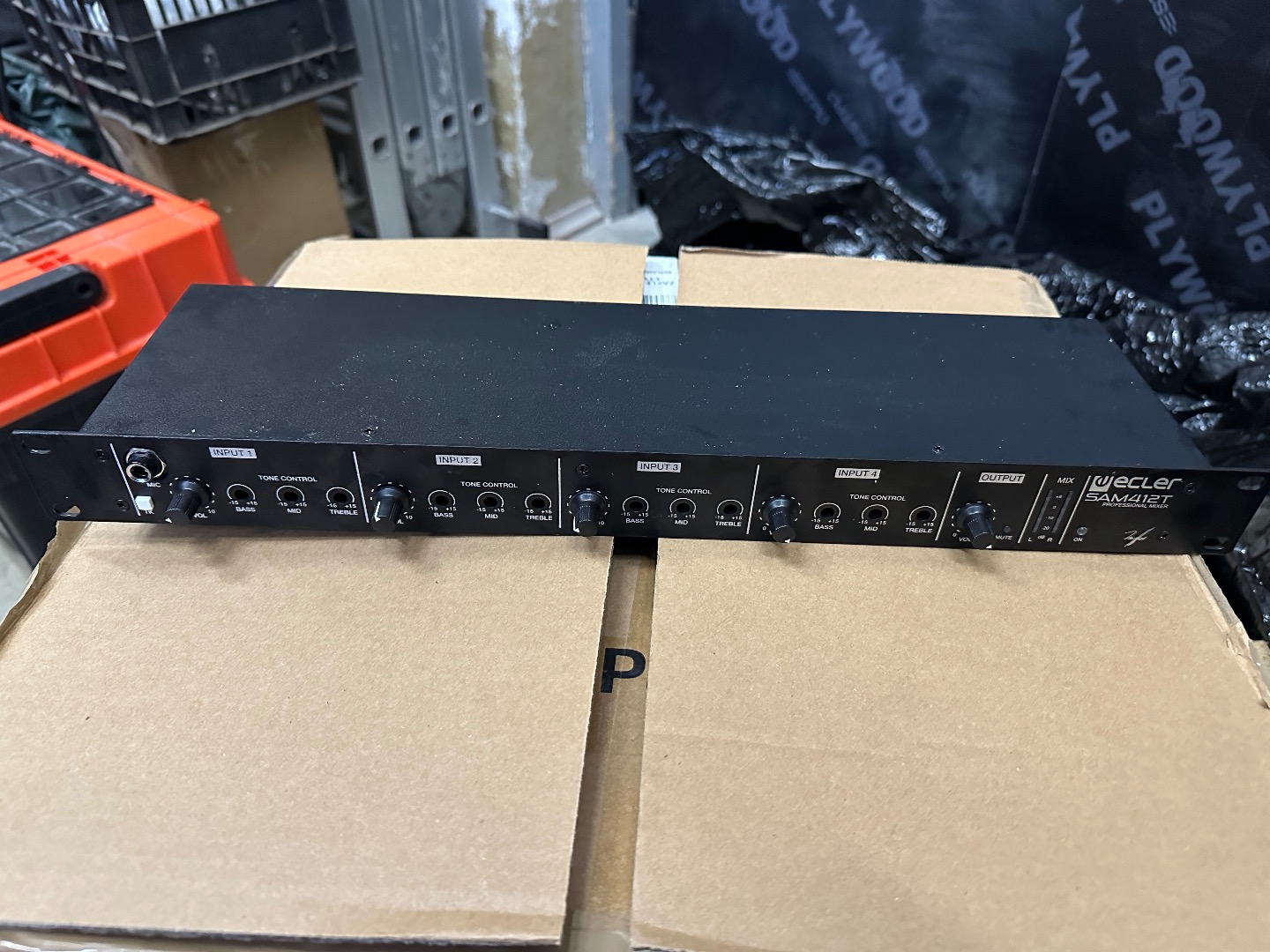 Rack mixer Ecler SAM 412T, 4 channels, 19 inches, 1U, mono/stereo switch for output, remote mute function.
