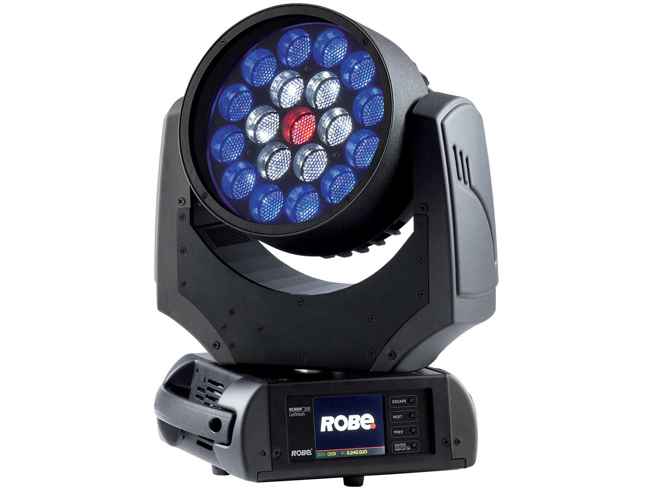 ROBE Lighting ROBIN LEDWash 300 moving light with omega brackets and power cable in quad flight case.