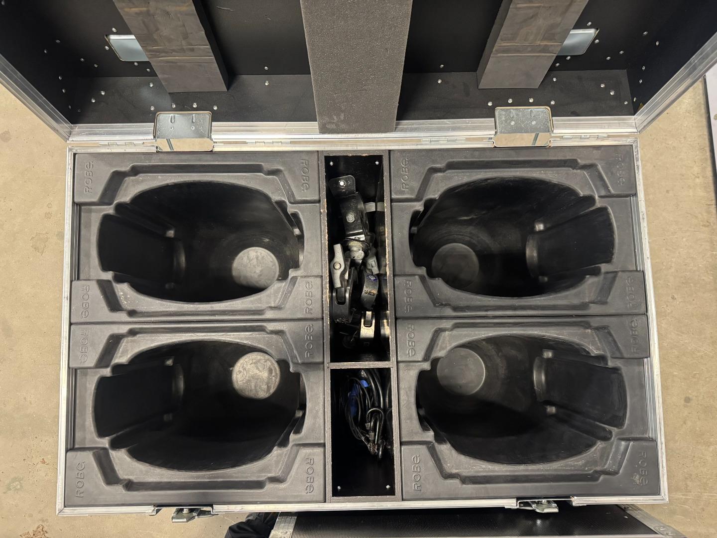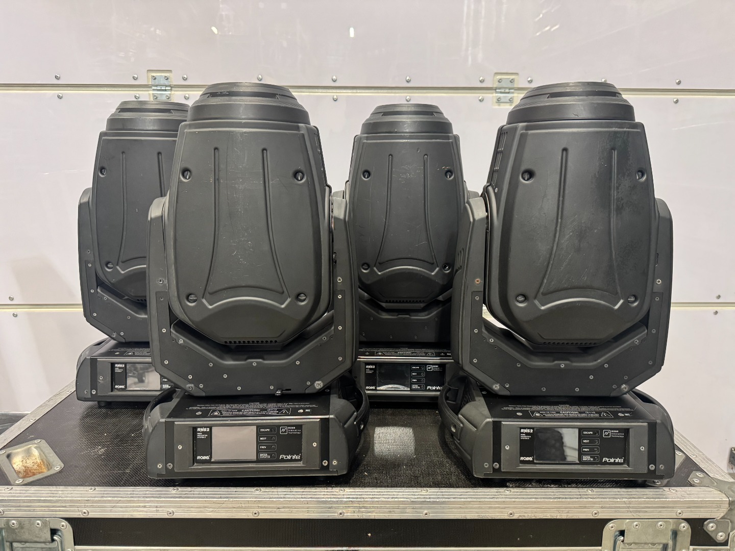 Robe Pointe moving head fixtures available for sale. Units have been used in professional environments and are in working condition. Sold in sets of 2 or 4 in flightcase.