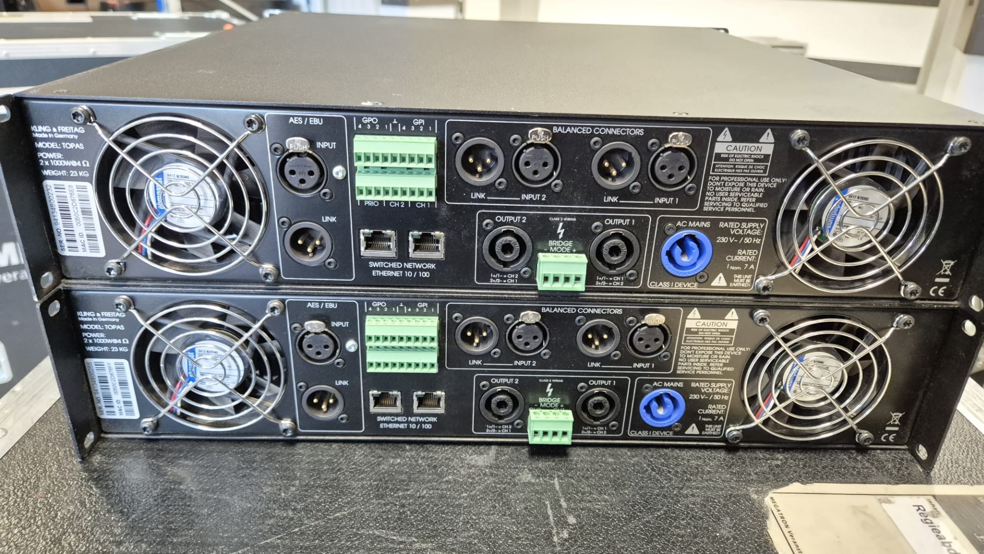 1 Verstärker funktioniert einwandfrei, beim anderen geht 1 Kanal ab und an in den Protect. Diesen gibt es als Reparatur-Objekt dazu.