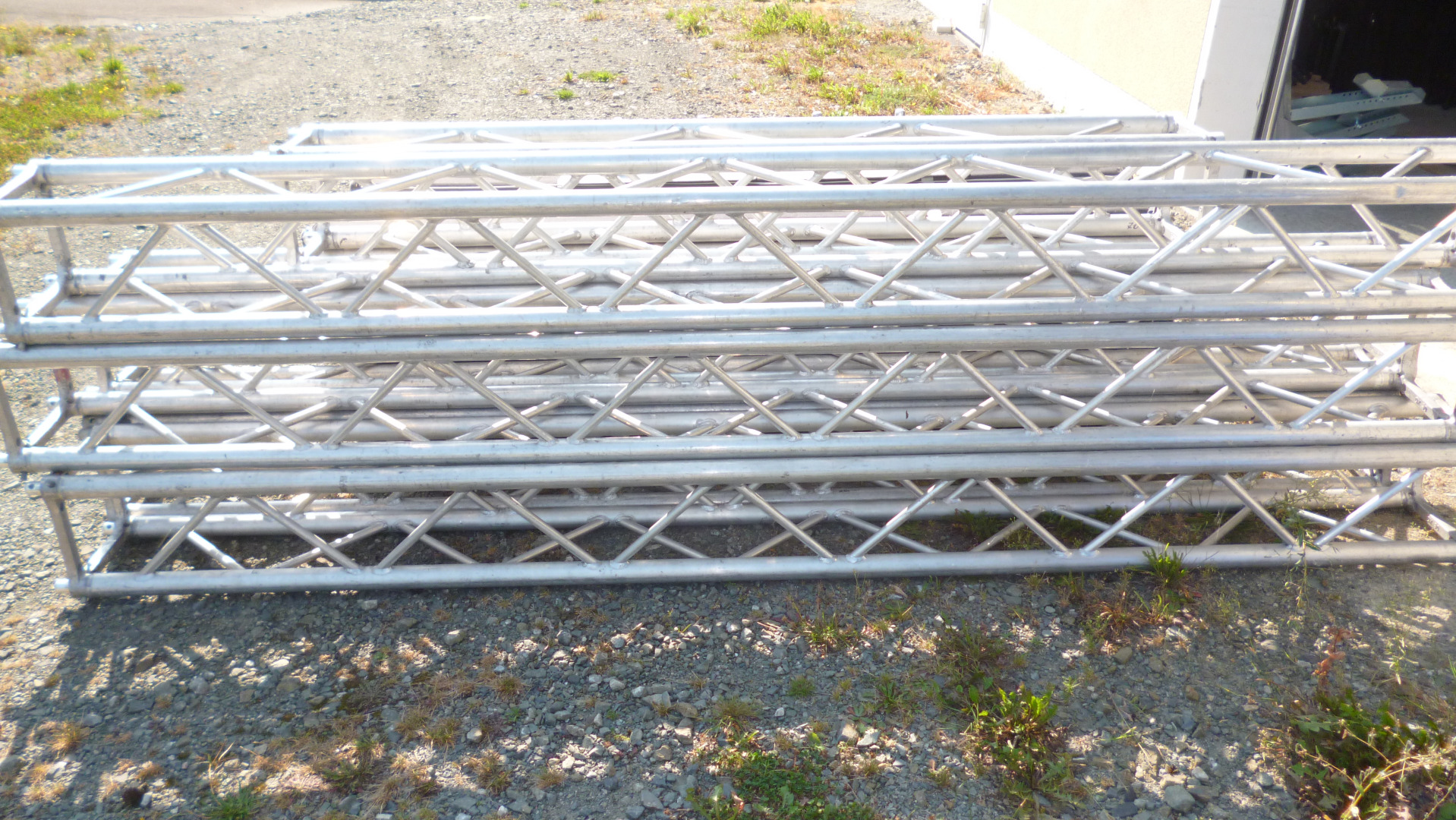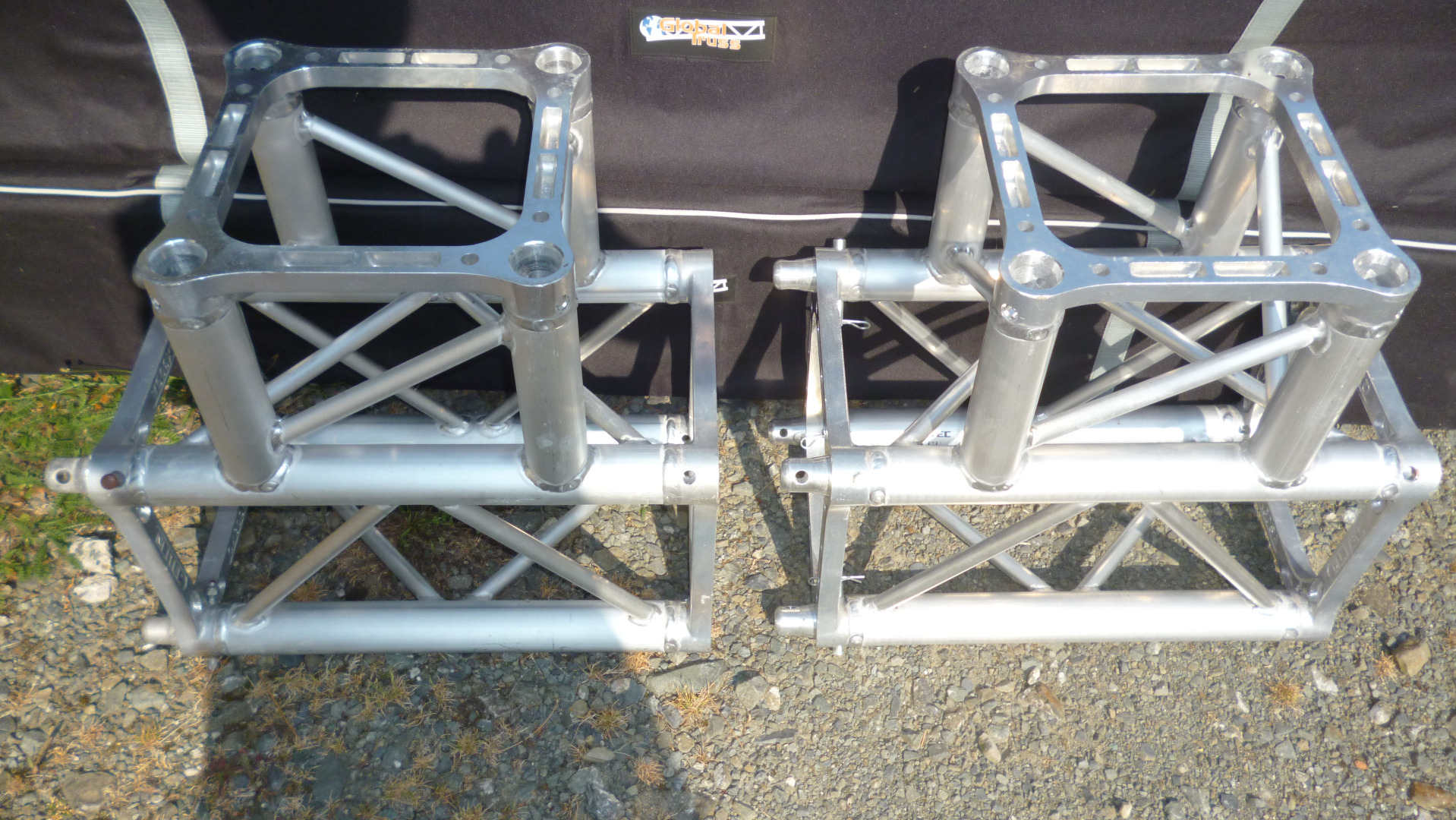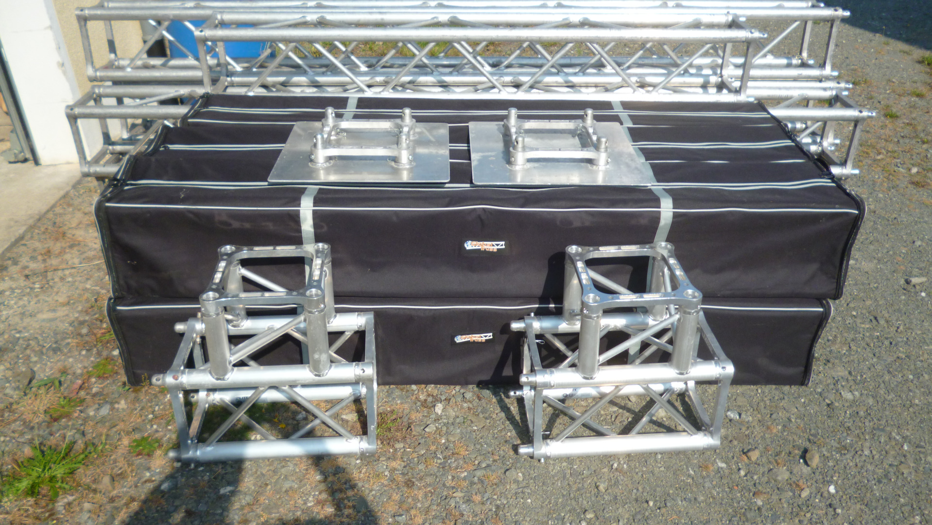 Verkaufe Vierpunkttraversen von Litec Manfrotto mit vollständigen Verbindersets. 5 mal 3 meter Länge im guten Zustand, 7 mal 2 meter Länge in sehr gutem Zustand, 2 mal T-Stück T35 in sehr gutem Zustand, 2 mal große Bodenplatte in gutem Zustand, 6 mal Soft Bag 2 meter Länge, Abgabe als ganzes Set