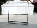 einfach zerlegbarer Garderobenständer, 26 Doppelhaken pro horizontalem Rohr, 2 Jacken pro Haken, Material: grauer, pulverbeschichteter Hammerschlag-Stahl, Farbe: Hammerschlag grau, rollbar, leicht transportierbar, Gewicht: 25 kg,