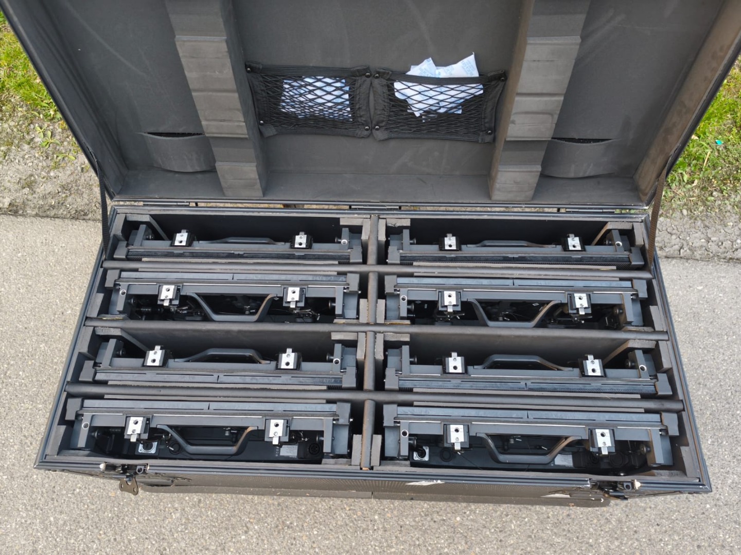 Die Wand besteht aus 3 Cases 2x 8 Platten pro Case und ein großes Zubehör Case