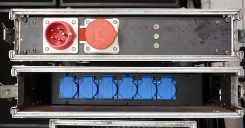 16A auf 1x 16A CEE 6x Schuko, Maße: 0,6 x 0,6 x 0,1 m