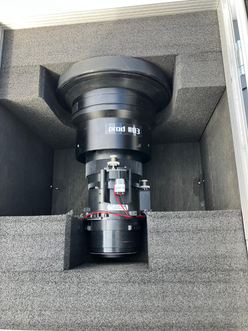 Das Set besteht aus jeweils einem Projektor, 2 Objektiven und einer Halterung.