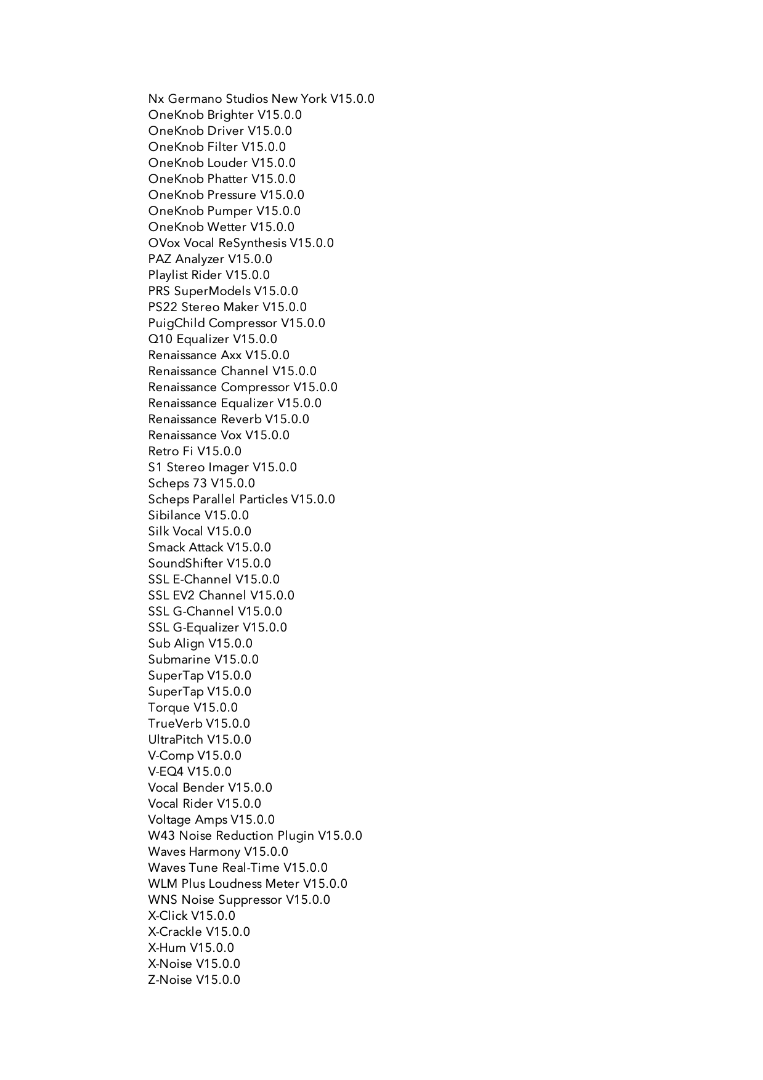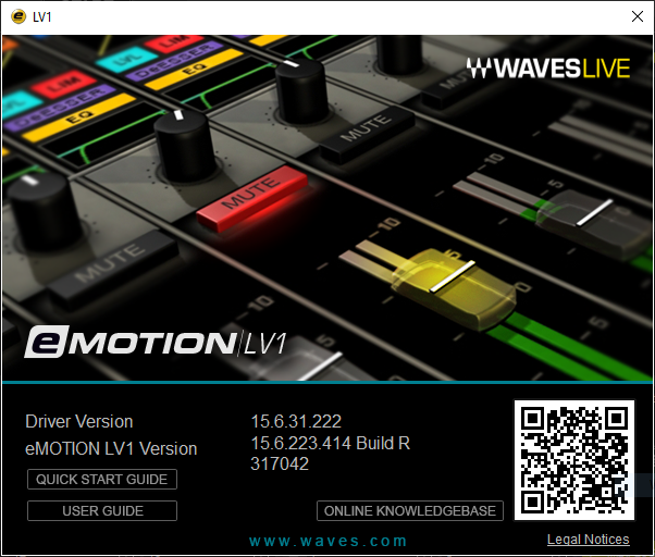 - LV1 Software, V15 mit der 64 Kanal Lizenz (maximal 64 stereo Inputs, 8 stereo Gruppen, 24 stereo Mixbusse, L/R/C/M, 8 stereo Matrix) und mehr als 100 Waves-Plugins (siehe Liste für Details)