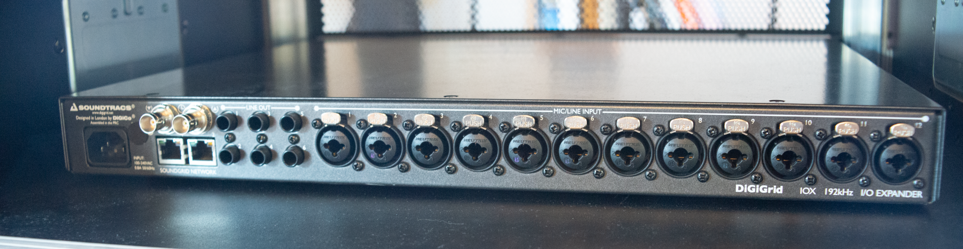 - 1x Digigrid IOX (12x Kombi-Preamps, 6 analoge Outputs, 4 Headphone Output) in einem 3HE Case