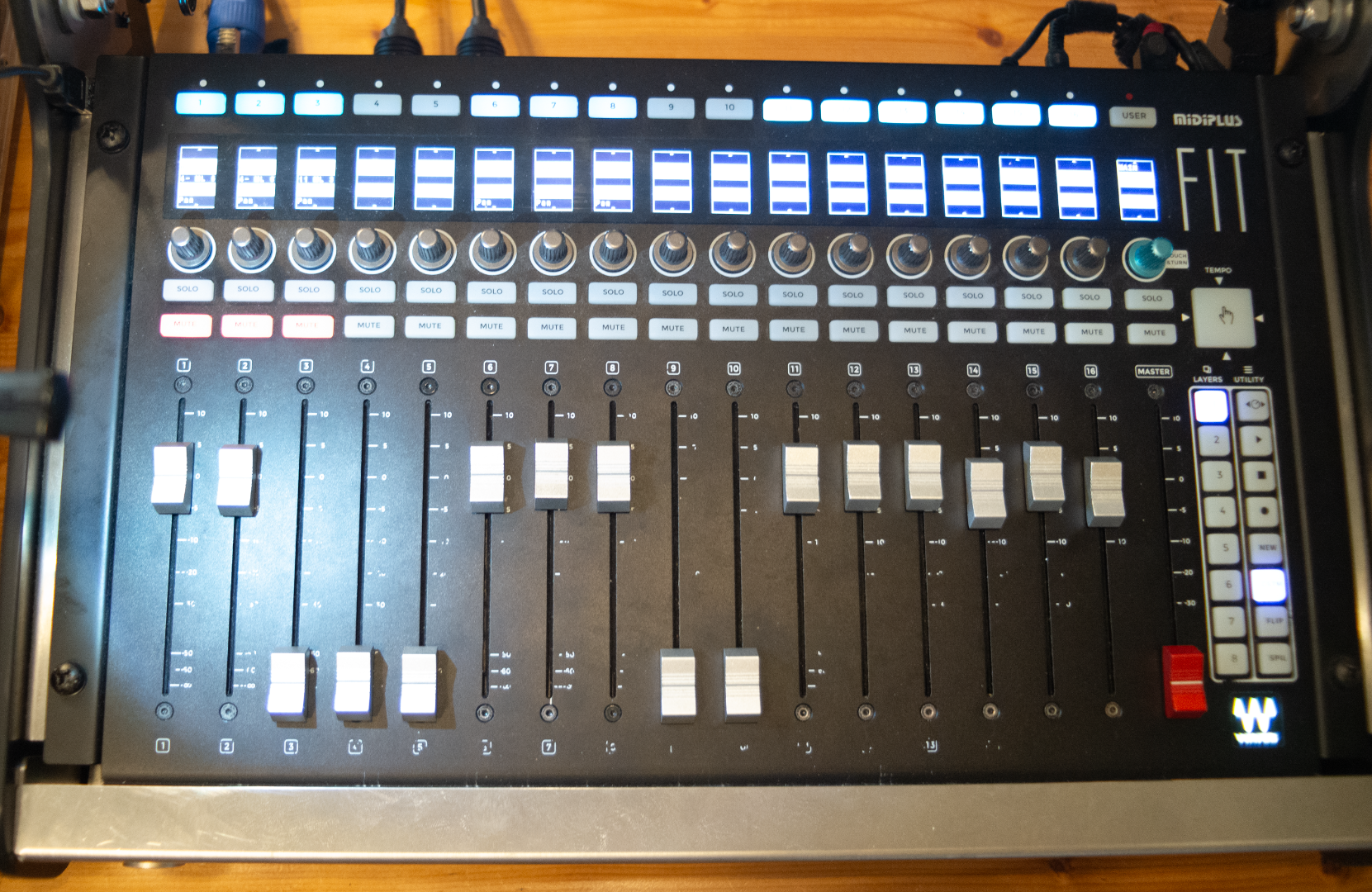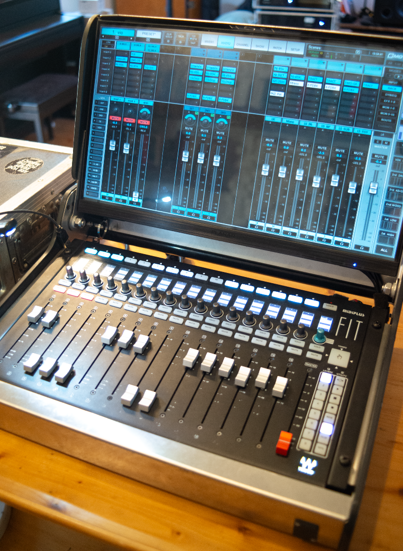 - 1x Faderbank im Holi-Case mit Planar 21.5" Touchdisplay und Waves FIT-Controller, zwei weitere USB- Anschlüsse