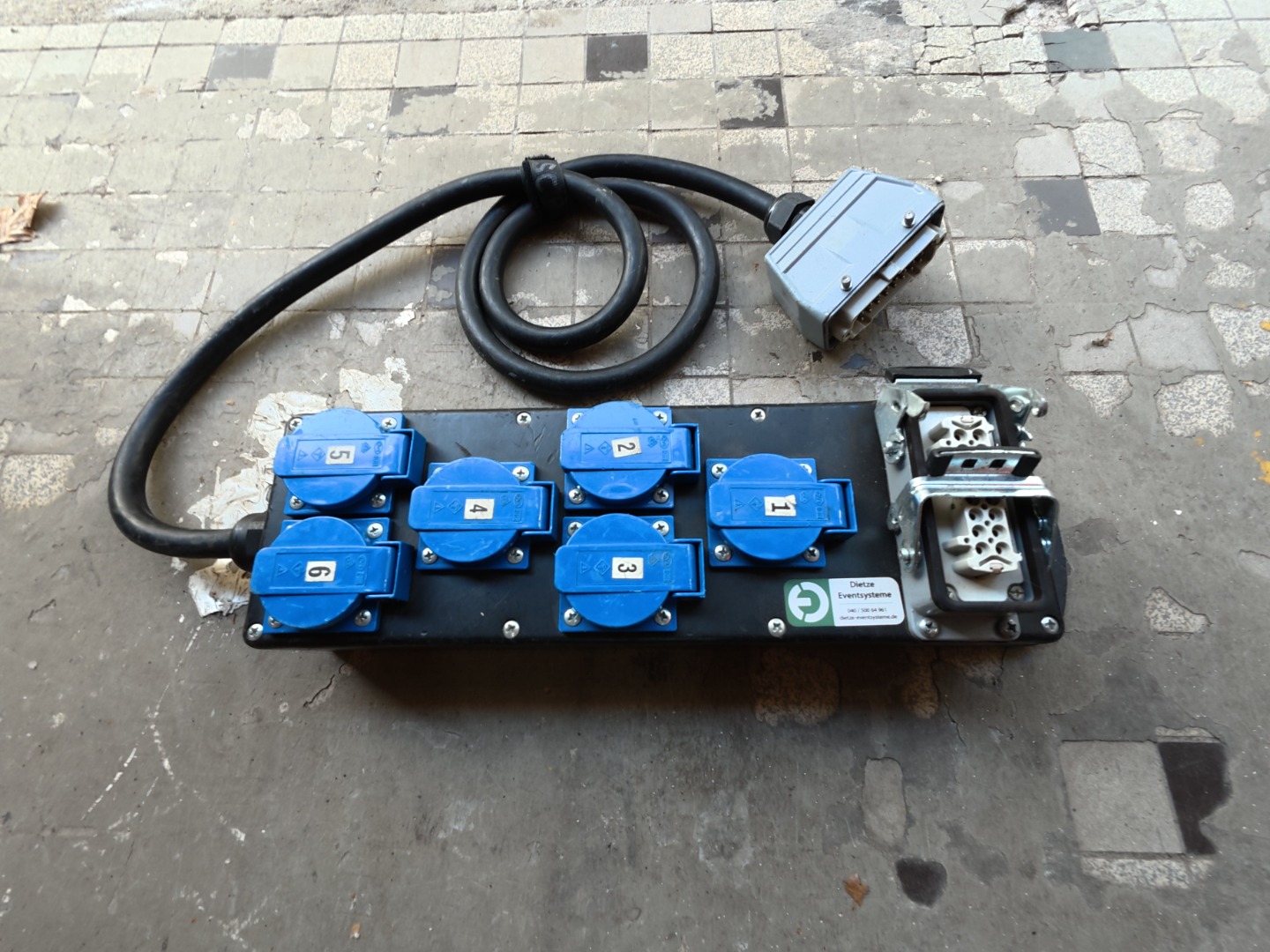 Zum Kauf steht ein Harting / HAN 16 Gummiverteiler mit Durchschliff auf 6 x Schuko.