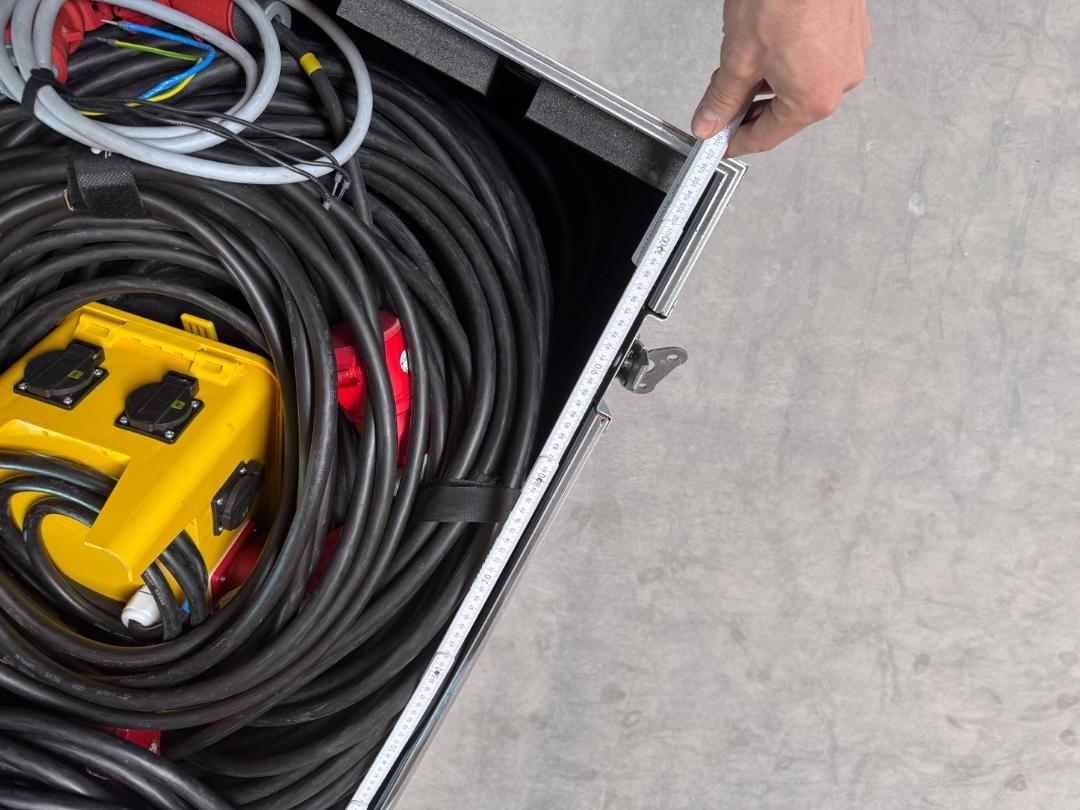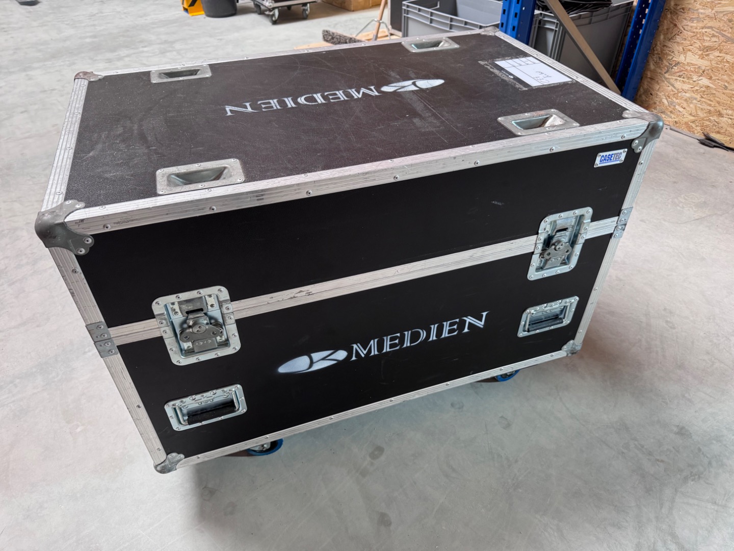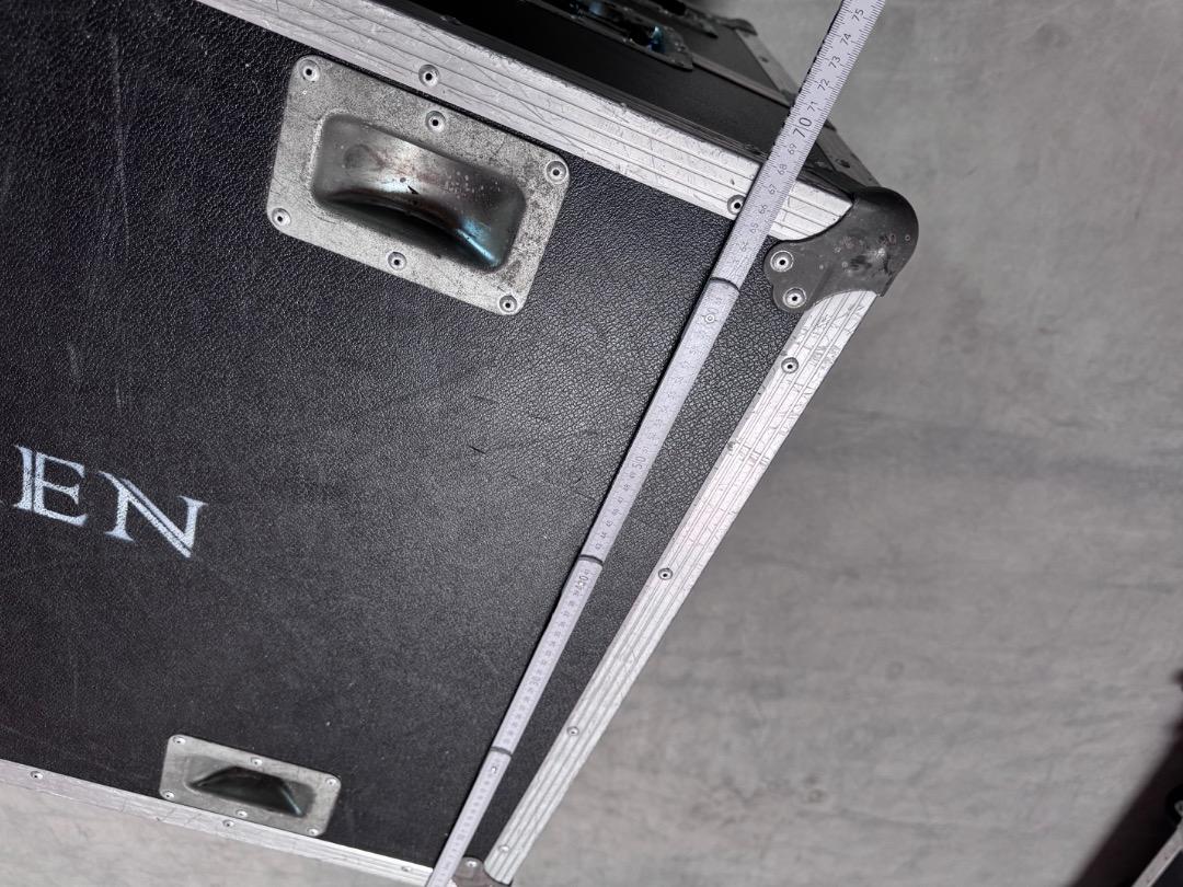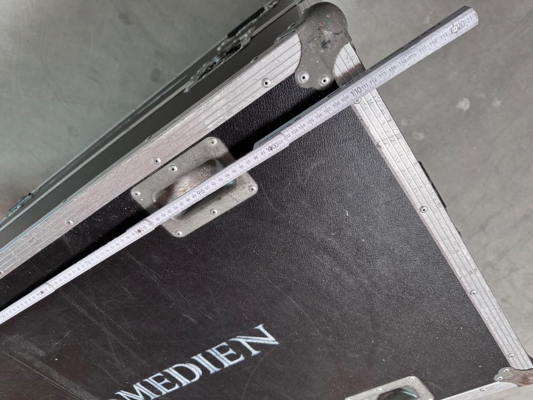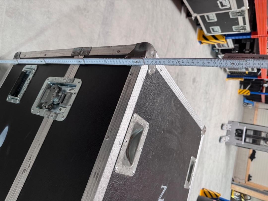 Verkauft wird ein Flightcase mit den Außenmaßen von 113x82x67cm inkl. die Höhe der Rollen. Bei diesem handelt es sich um 100mm Bluewheels mit zwei gebremsten und zwei ungebremsten Rollen.
