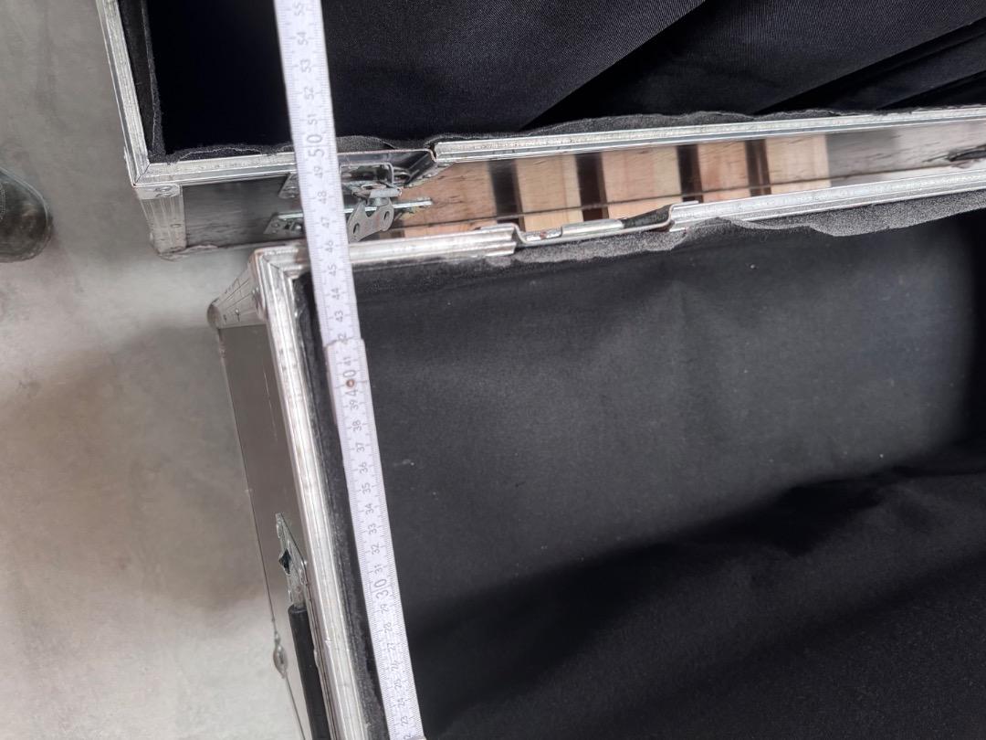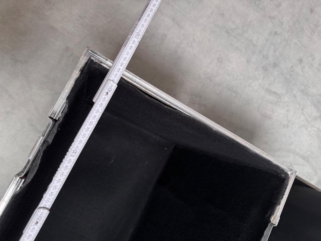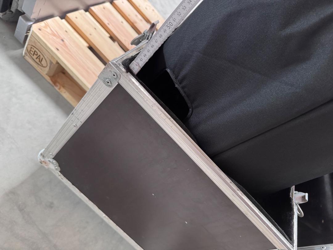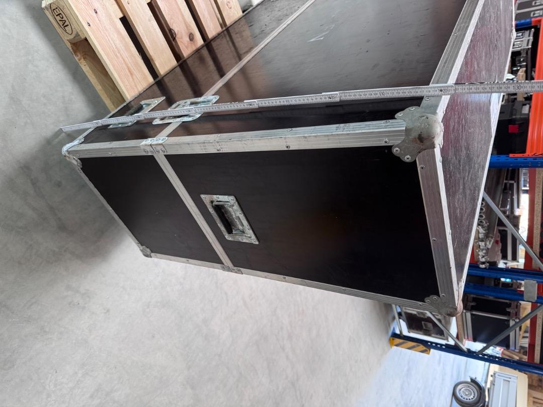 Verkauft wird ein Flightcase mit den Außenmaßen von 148x121x49cm zzgl. die Höhe der Rollen. Bei diesem handelt es sich um 100mm Bluewheels mit zwei gebremsten und zwei ungebremsten Rollen.