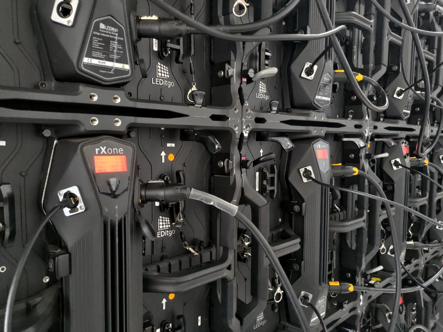 Zum Verkauf stehen hier gebrauchte LEDitgo rXone V1 LED Module. Die Module sind nach aktuellem Stand Pixelfehlerfrei. Somit sind reparierte Pixelkarten enthalten. Eine aktuelle DGUV Prüfung ist vorhanden. Ein Strom- und Datenpatchkabel je Modul ist enthalten.