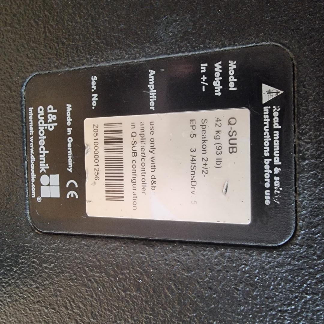 Zum Verkauf kommen 4 Stück d&b Audiotechnik Q-SUBs im guten Zustand optional auch 1 Stück d&b Audiotechnik D12 Systeverstärker (mit EP5 Anschluss)!