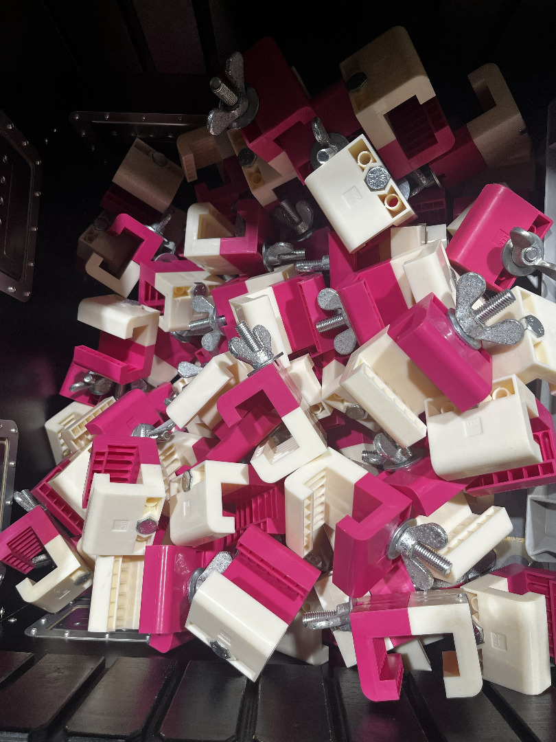 Kunststoff-Verbindungsklammer für Bühnenpodeste des Herstellers 2M, ebenso kompatibel für eine Vielzahl anderer Hersteller,