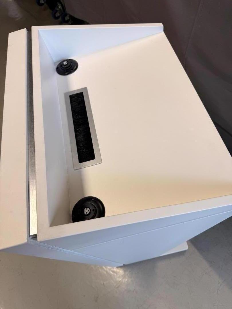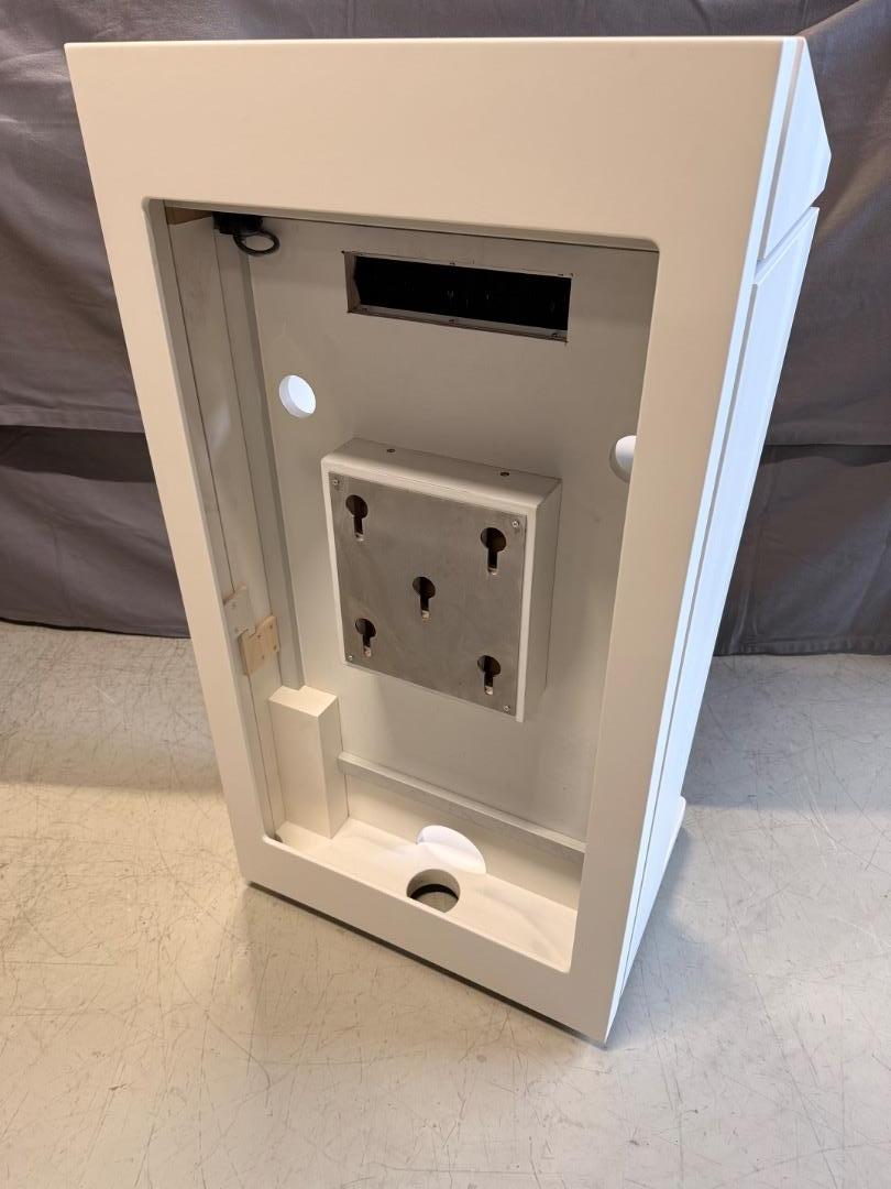 - Rednerpult Body inkl. 2x XLR mit Shockmount, Burstenleiste zur Kabeldurchführung, Schuko-Anschlüssen und 10m Powercon-Zuleitung