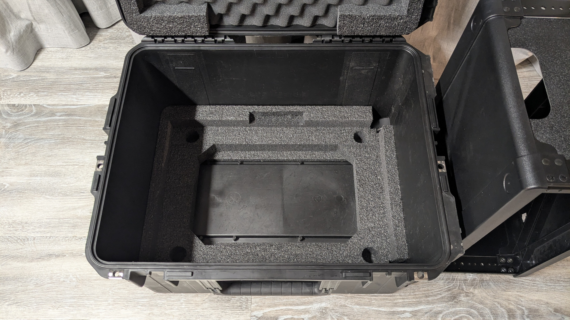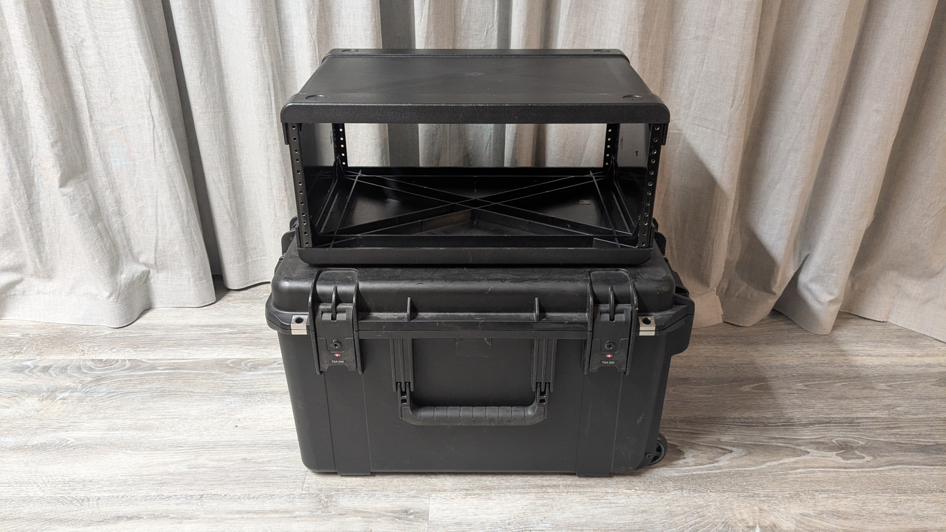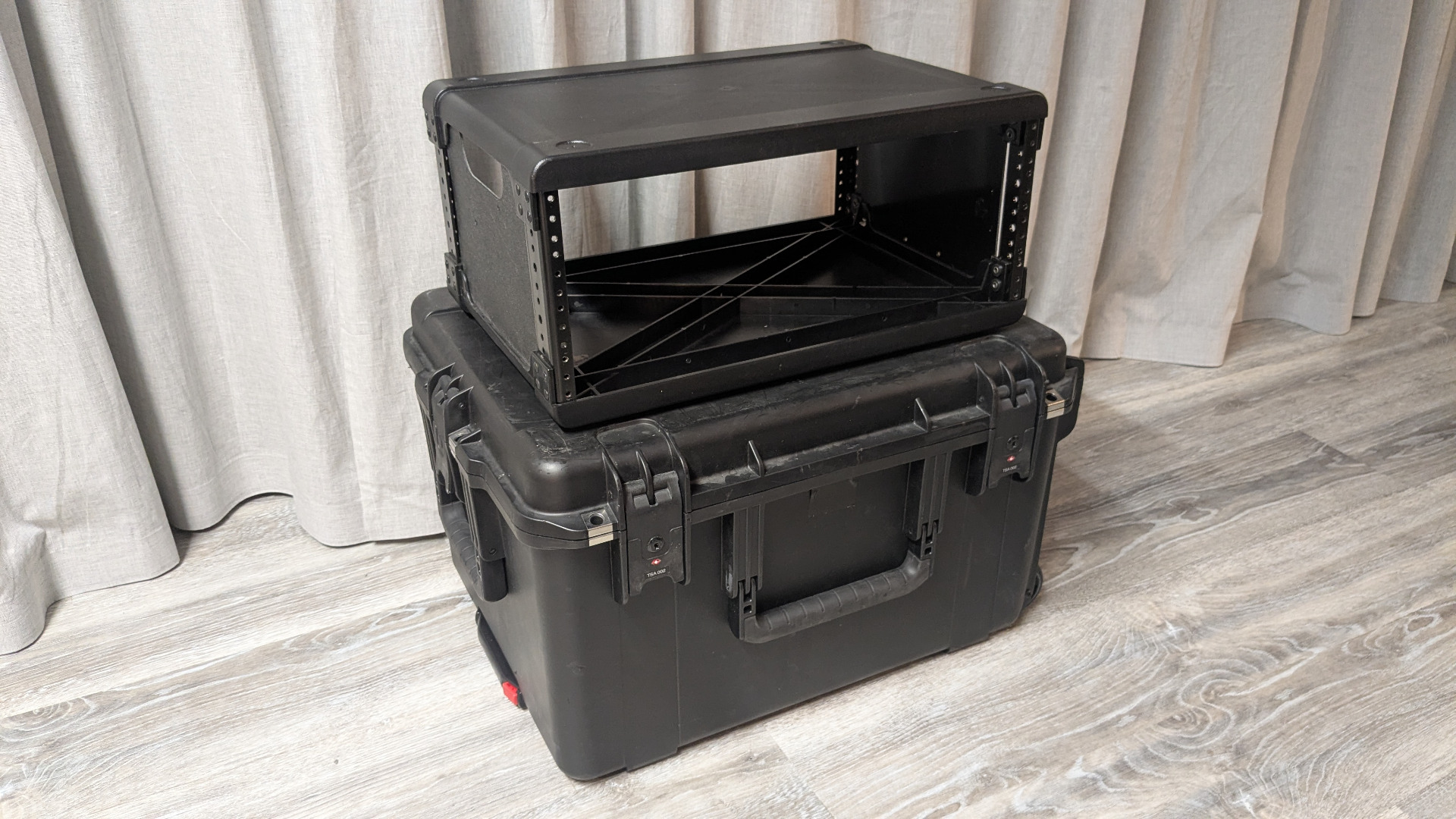 Zum Verkauf steht ein SKB iSeries 2217-12 4HE Fly Rack Case in gebrauchtem aber gutem Zustand. Durch die stabile Bauweise des Cases und der passgenauen Schaumstoffeinlage ist das entnehmbare Rack gut geschützt und damit perfekt zum Fliegen geeignet. Wir haben in zwei dieser Racks/Cases jahrelang unsere Kemper Amps und Funkstrecken transportiert und die eingebaute Trolleyfunktion erleichtert den Transport auf Tour oder am Flughafen enorm.