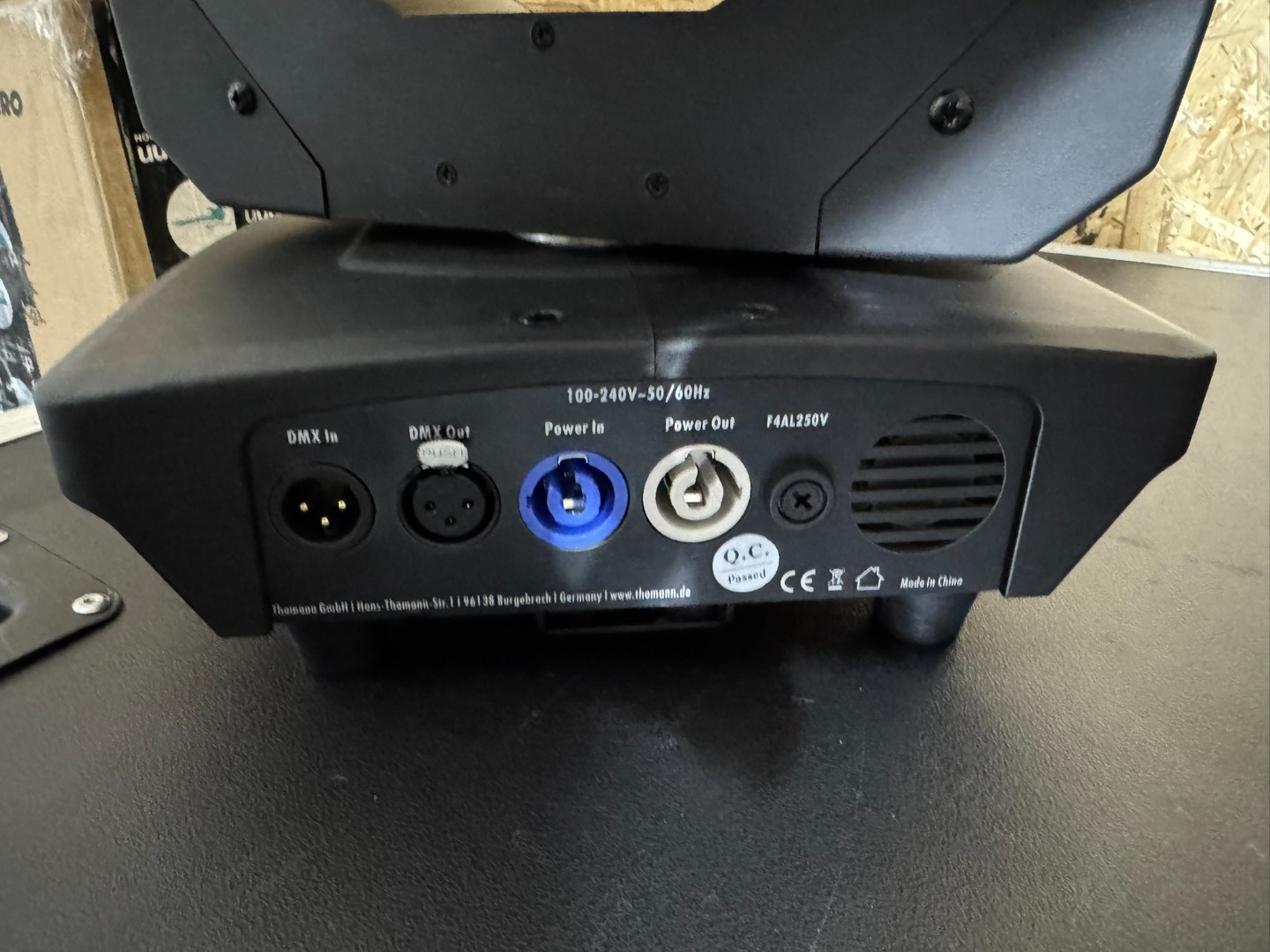 Die Lampen besitzen jeweils eine 90 Watt LED und mussten nie repariert werden. Das Leuchtmittel reicht für Kleine bis Mittelgroße Veranstaltungen aus. Alle Geräte verfügen über einen 3-Pin DMX Anschluss sowie Powercon.