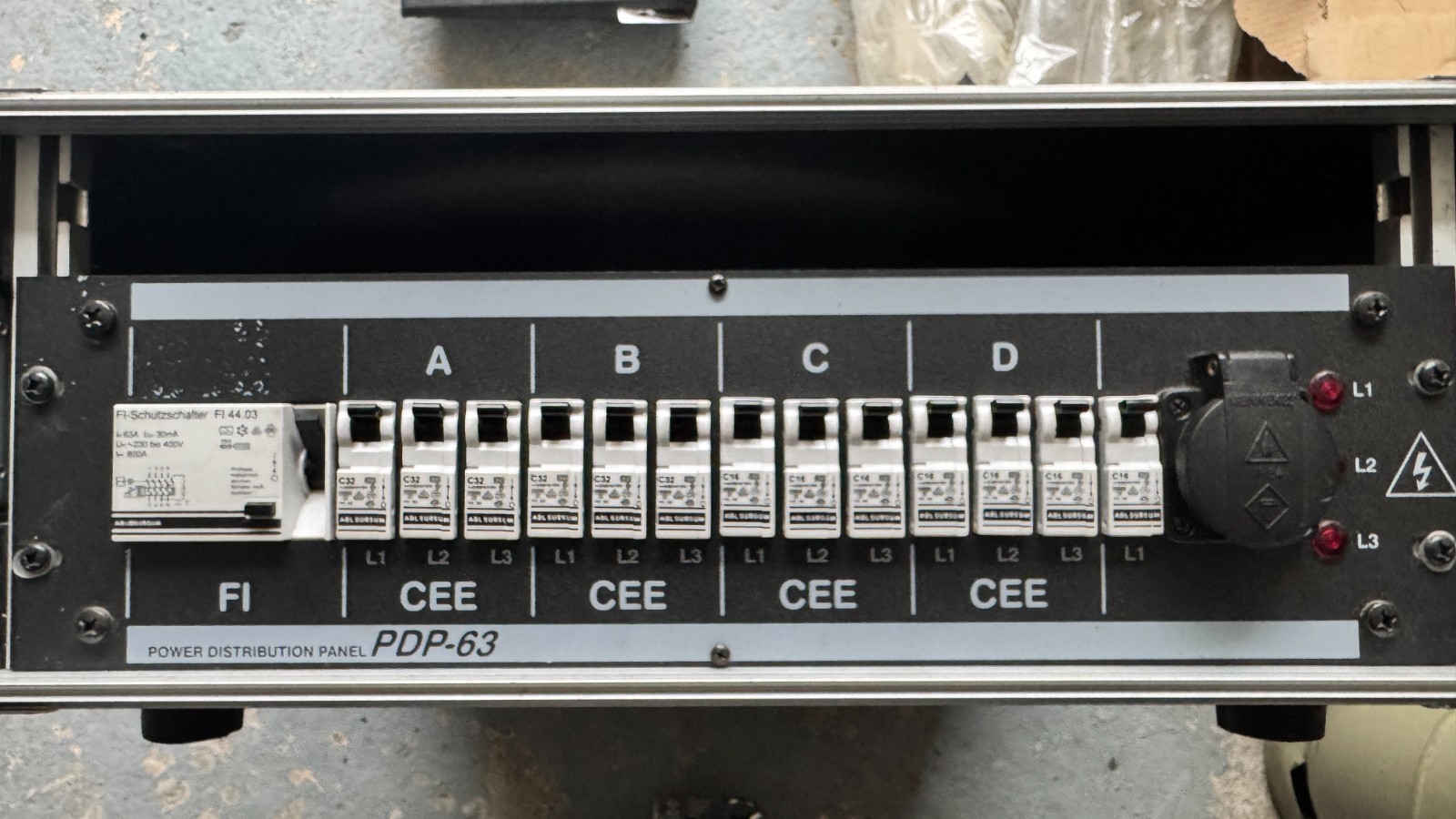 2x CEE 400V 16a Abgesichert C162x CEE 400V 32a Abgesichert C321x Schuko 230V Abgesichert C161x FI Schutzschalter Es handelt sich um einen privat Verkauf, somit keine Garantie und Gewährleistung.