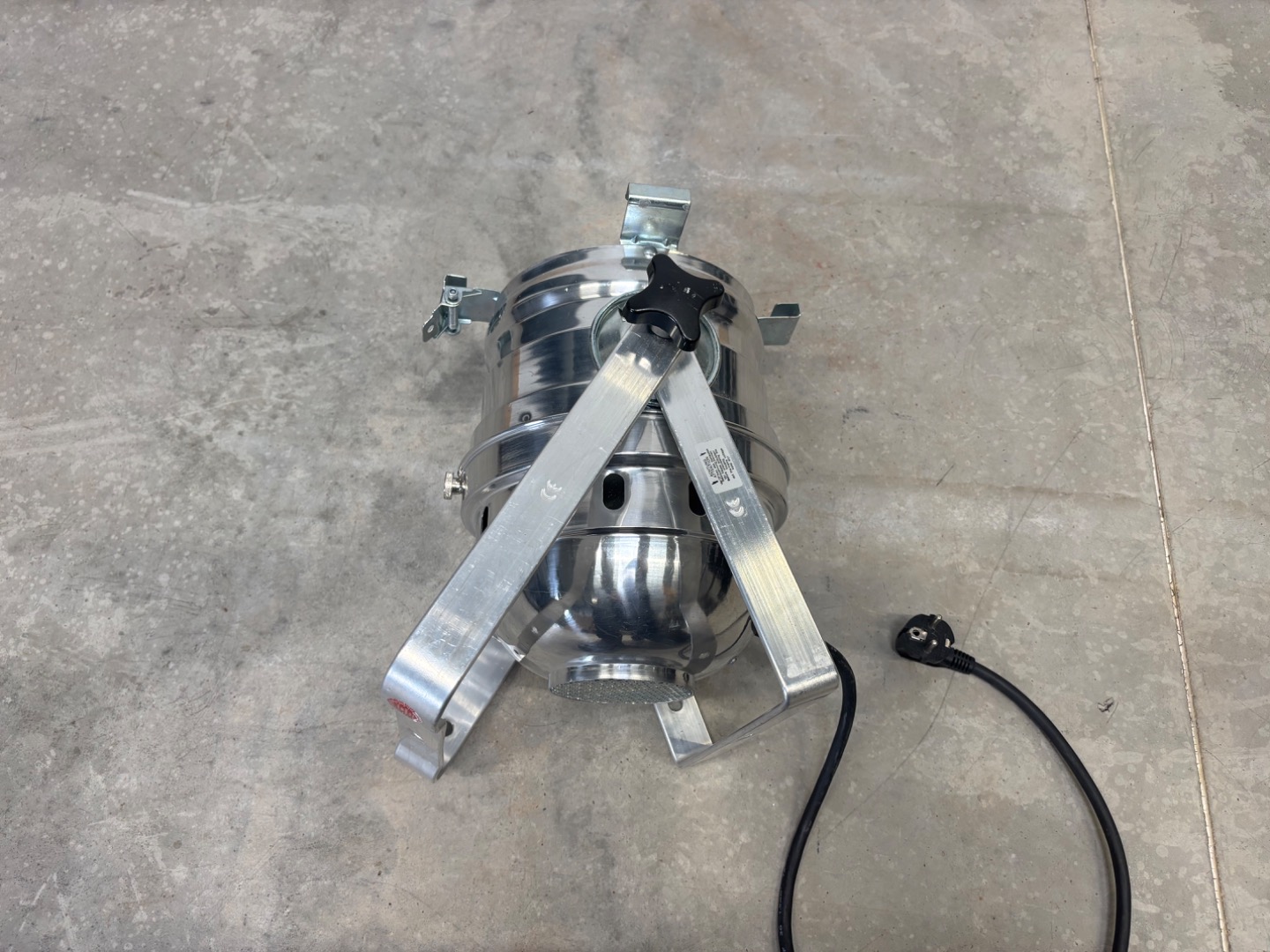 Ein PAR-64 Floorspot ist ein klassischer Bodenscheinwerfer im PAR-Can-Format (Parabolic Aluminized Reflector Größe 64) zur Bühnen-, Event- und Ambientebeleuchtung. Er wird meist mit einem PAR-64-Leuchtmittel (Halogen oder LED) betrieben, das ein stark gebündeltes, gleichmäßiges Licht nach vorne wirft. Die kompakte PAR-Can-Bauform mit Doppelbügel erlaubt das Aufstellen auf dem Boden oder das Ausrichten in gewünschte Richtung, ideal für Wash-Effekte, Hintergrundlicht oder Akzentbeleuchtung. Typisch wird die Lichtquelle über eine Standard-Netzversorgung betrieben und kann mit Farbfiltern oder Barndoors ergänzt werden.