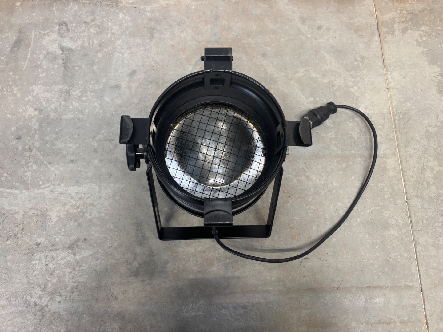Ein PAR-64 Floorspot ist ein klassischer Bodenscheinwerfer im PAR-Can-Format (Parabolic Aluminized Reflector Größe 64) zur Bühnen-, Event- und Ambientebeleuchtung. Er wird meist mit einem PAR-64-Leuchtmittel (Halogen oder LED) betrieben, das ein stark gebündeltes, gleichmäßiges Licht nach vorne wirft. Die kompakte PAR-Can-Bauform mit Doppelbügel erlaubt das Aufstellen auf dem Boden oder das Ausrichten in gewünschte Richtung, ideal für Wash-Effekte, Hintergrundlicht oder Akzentbeleuchtung. Typisch wird die Lichtquelle über eine Standard-Netzversorgung betrieben und kann mit Farbfiltern oder Barndoors ergänzt werden.