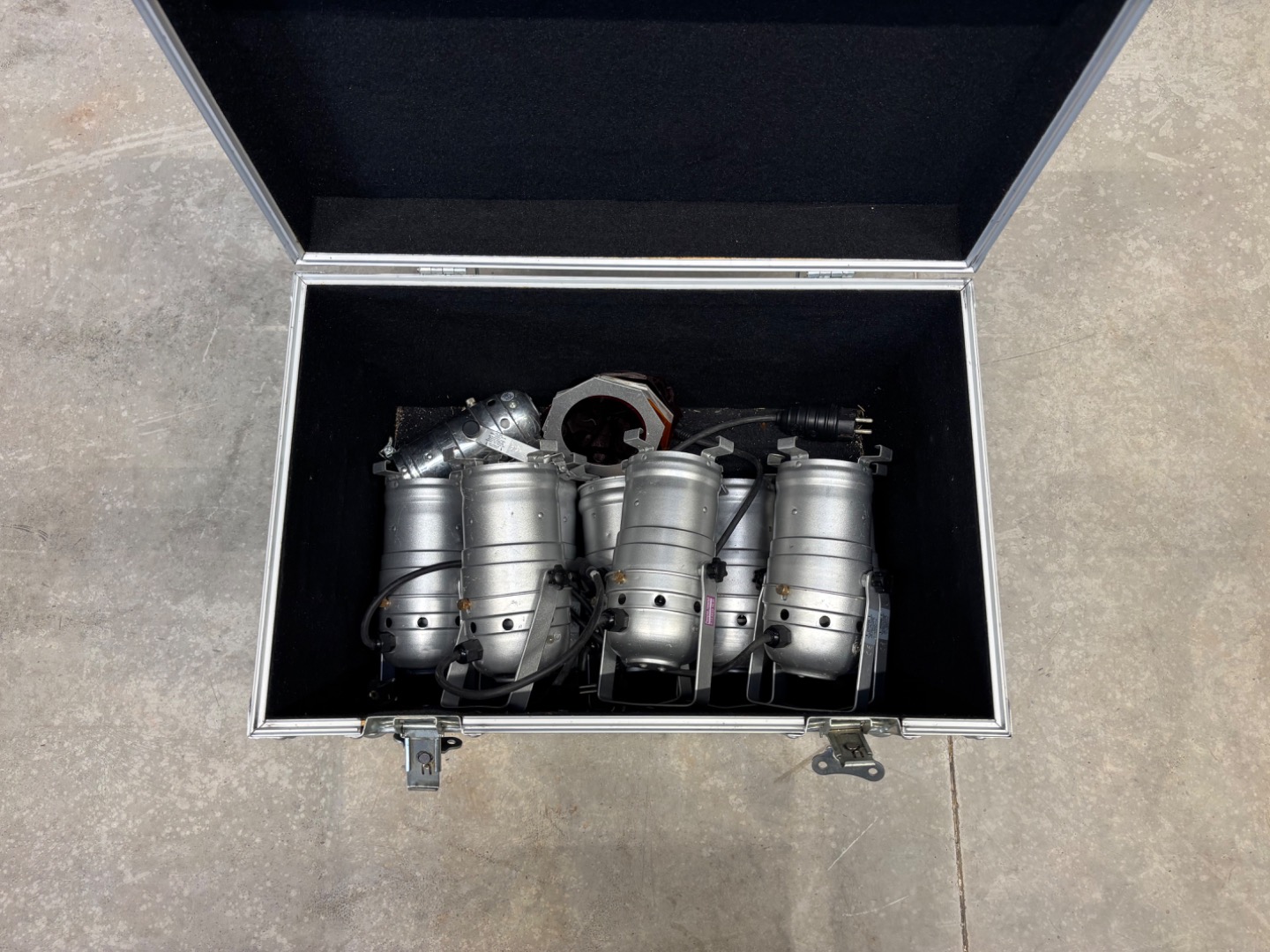 Ein PAR36 Scheinwerfer (silber) ist ein kompakter Bühnen /Event Lichtscheinwerfer im klassischen PAR Can Format mit PAR36 Leuchtmittel (rund, ca. 36 × 50 mm). Er liefert ein gerichtetes, kräftiges Licht und eignet sich zur Akzent , Hintergrund oder Wash Beleuchtung. Die silberne Gehäusefarbe reflektiert zusätzlich etwas Licht und passt optisch zu vielen Setups. Geeignet für Bühnen, Clubs, Studios und Dekolicht