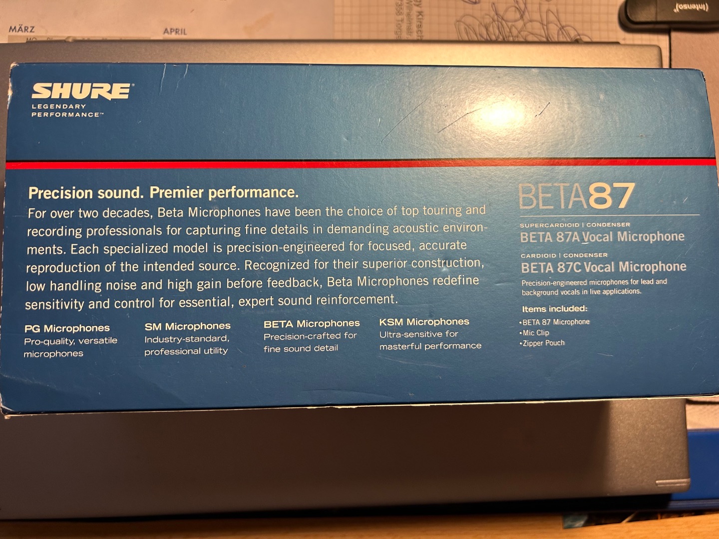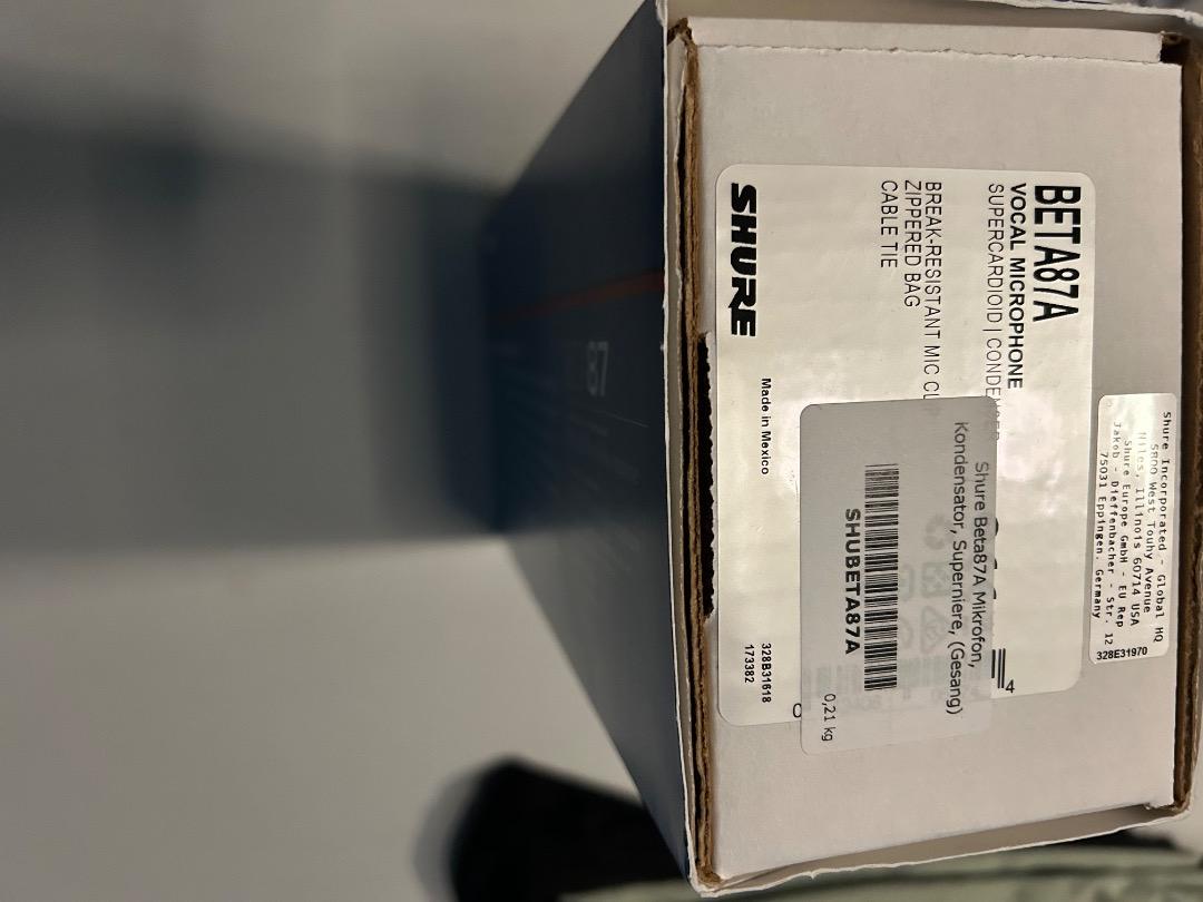 Biete ein neuwertiges Original verpacktes Kondensat - Gesangsmikrofon der Marke Shure. Es wurde nur fürTestzwecke 2 mal benutzt hat keine Gebrauchsspuren und funktioniert einwandfrei. Laut Thomann eines der robustesten,zuverlässigsten und hochwertigsten Kondensator- Gesangsmikrofone der Welt. Alle technischen Daten findet man im Internet. Da der Artikel 2 mal benutzt wurde wird er als gebraucht verkauft.