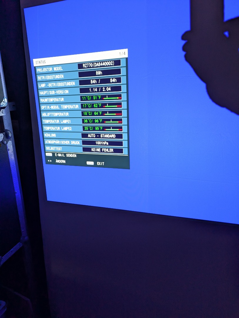 Inkl. Standartoptik ( 1,7-2,4 : 1 ) Der Beamer hat erst 89 Betriebsstunden.