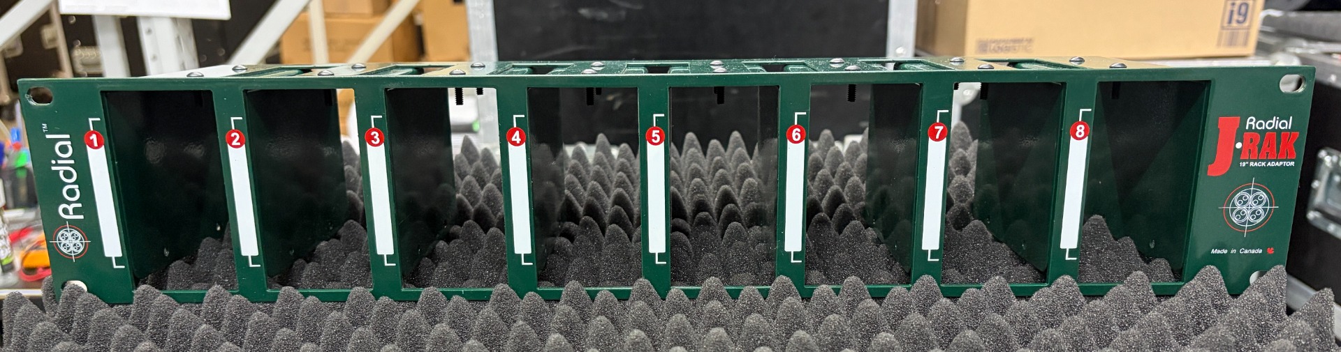 Used but very good condition Radial J-Rak 8 8-space Rack Adapter