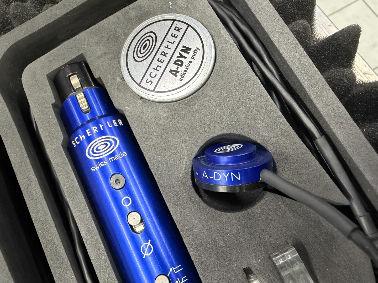 The A-DYN consists of: A-DYN pick-up, green putty container, cable holders and the A-PRE and floor support.