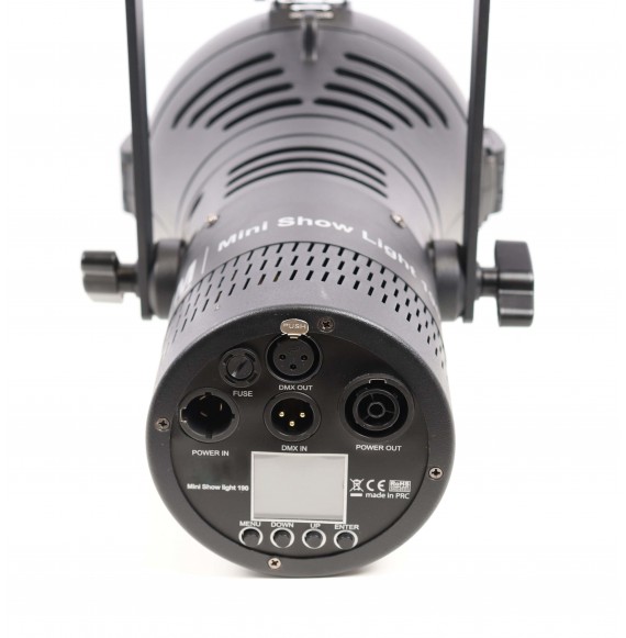 Die hochwertige Verarbeitung des Gerätes wird durch die Neutrik True1-Steckverbinder und ein mehrfarbiges TFT-Display abgerundet. Ebenso macht die Auswahl von vier verschiedenen DMX-Kanälen (2,3,5 & 7CH) sowie die Verfügbarkeit von vier verschiedenen Dimmkurven die Showlight 190 CW für den professionellen Anwender auf Messen, Museen oder Ausstellungen interessant. Die Showlight 190 CW kann über DMX512, im Master / Slave Modus, sowie mit Auto-Programmen betrieben werden.