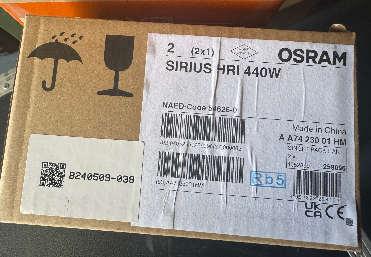 Wir trennen uns ! Zum Verkauf kommt ein Leuchtmittel für z.B. Robe Mega Pointe. Die genaue Bezeichnung lautet: Osram Sirius 440W. Die Leuchtmittel sind neu und unbenutzt. die Kartons wurden aber schon einmal geöffnet. Insgesamt stehen 20stk zur Verfügung