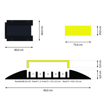 -5 Kabelkanäle (4x ca. 35 mm, 1x ca. 40 mm)