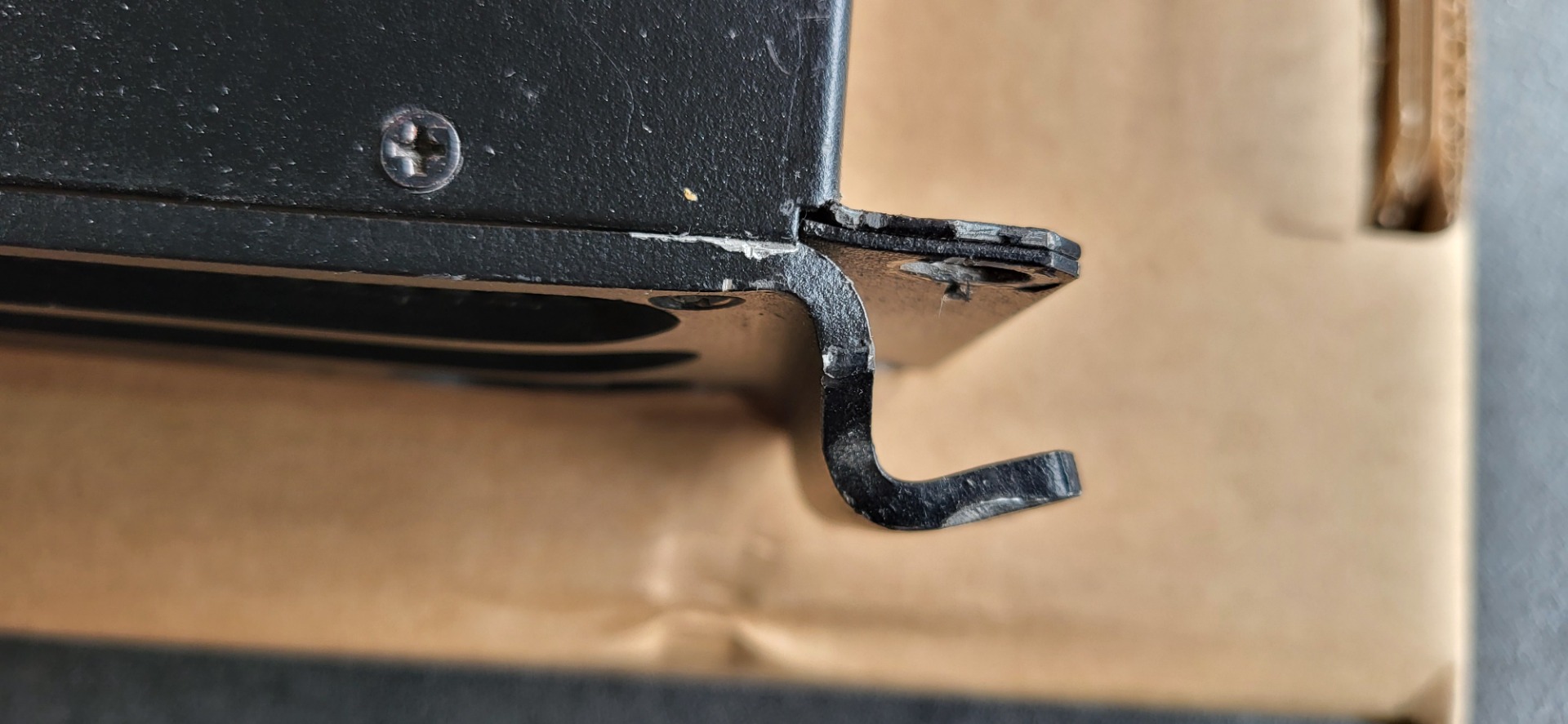 Läuft ohne Probleme, hat Kratzer auf Ober / Unterseite vom Rackeinbau sowie ist der Griff bzw die Frontblende auf der rechten Seite etwas verbogen. Der Schaden ist schon seit Jahren so und hat nie Probleme gemacht.