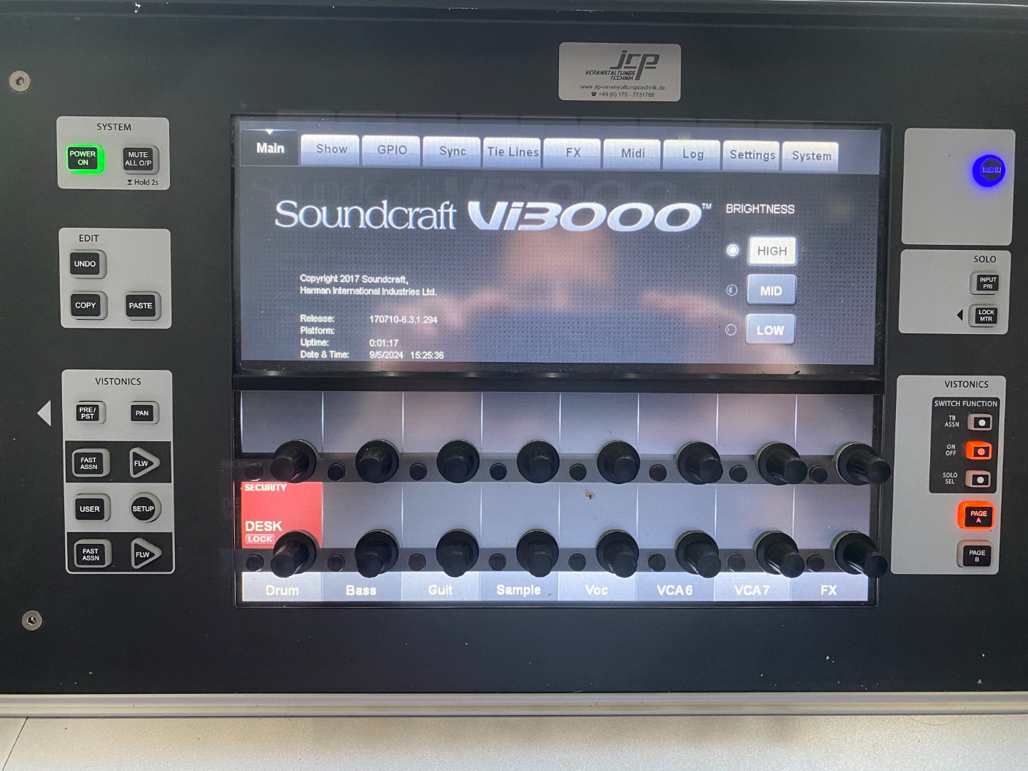 Verkaufe hier wegen Systemumstellung das Profi-Mischpult Vi3000 von Soundcraft. Das Pult ist technisch in einem sehr guten Zustand und optisch gibt es leichte Kratzer (siehe Bilder). Ich habe noch neue Seitenteile für das Pult, welche die angekratzten ersetzen können.