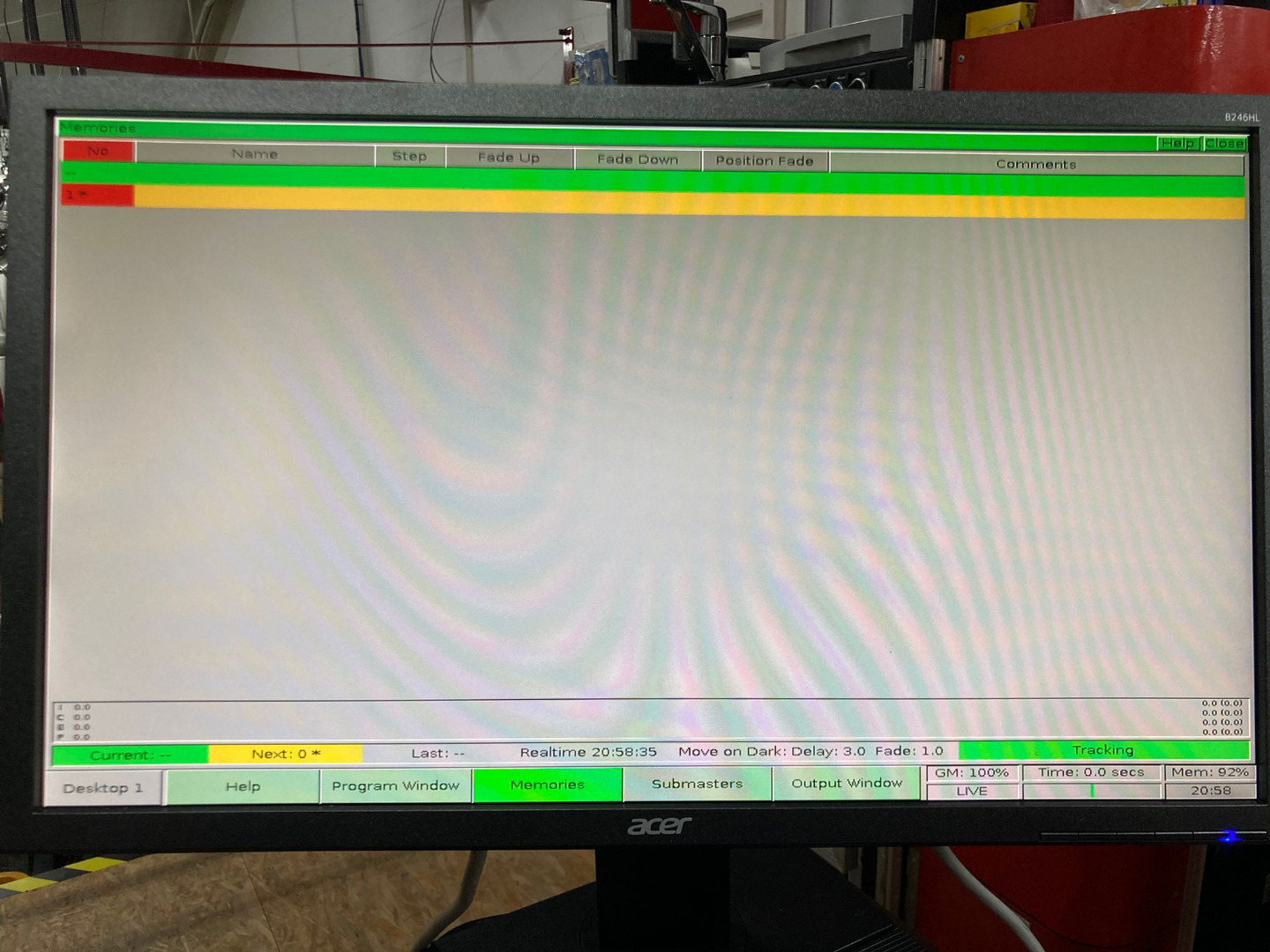 Beim dem Display über den Finger-Rädern ist die Hintergrundbeleuchtung etwas dunkler als bei den anderen.