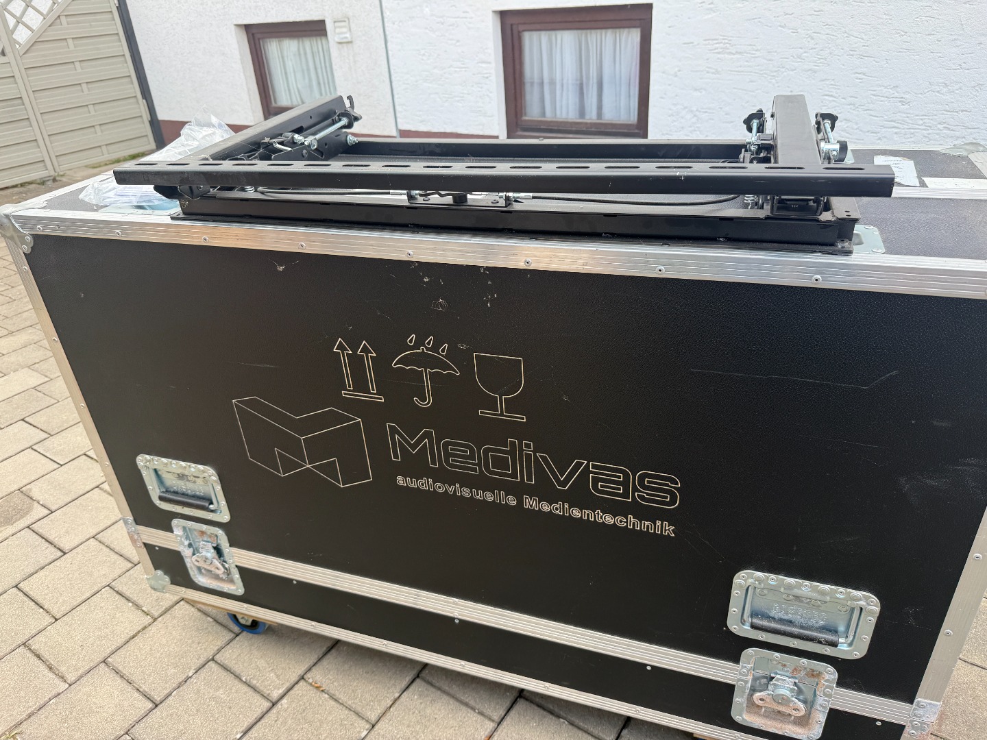 2x Profi-Flightcases: Jeweils für 2 Displays ausgelegt, extrem robust für den sicheren Transport.