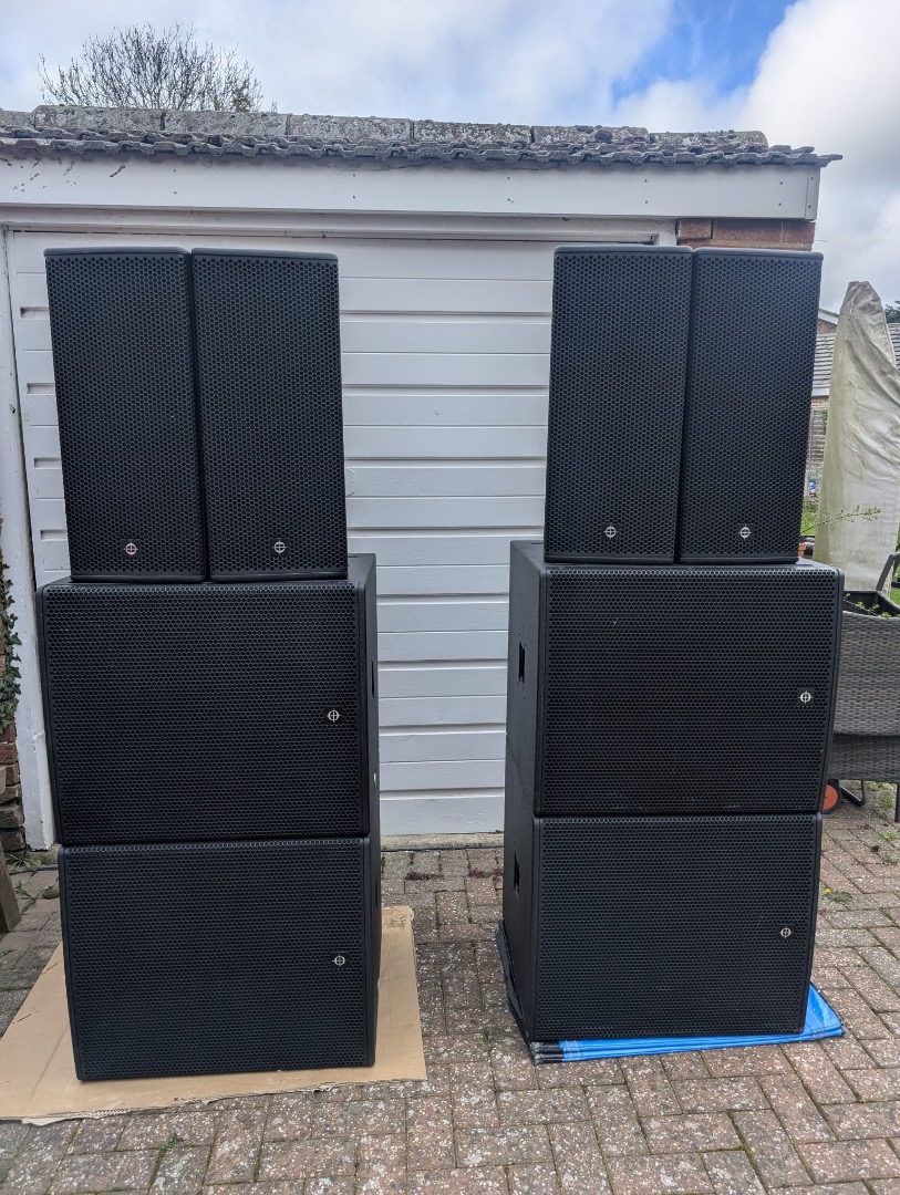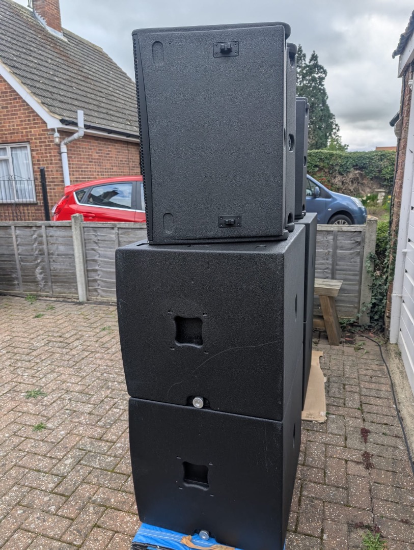 Die Lautsprecher sind technisch in gutem Zustand. Sie weisen leichte Kratzer auf, die weder Funktion noch Klang beeinträchtigen. Die Anlage stammt aus einer Clubinstallation. Davon habe ich für mich auch schon Komponenten übernommen.