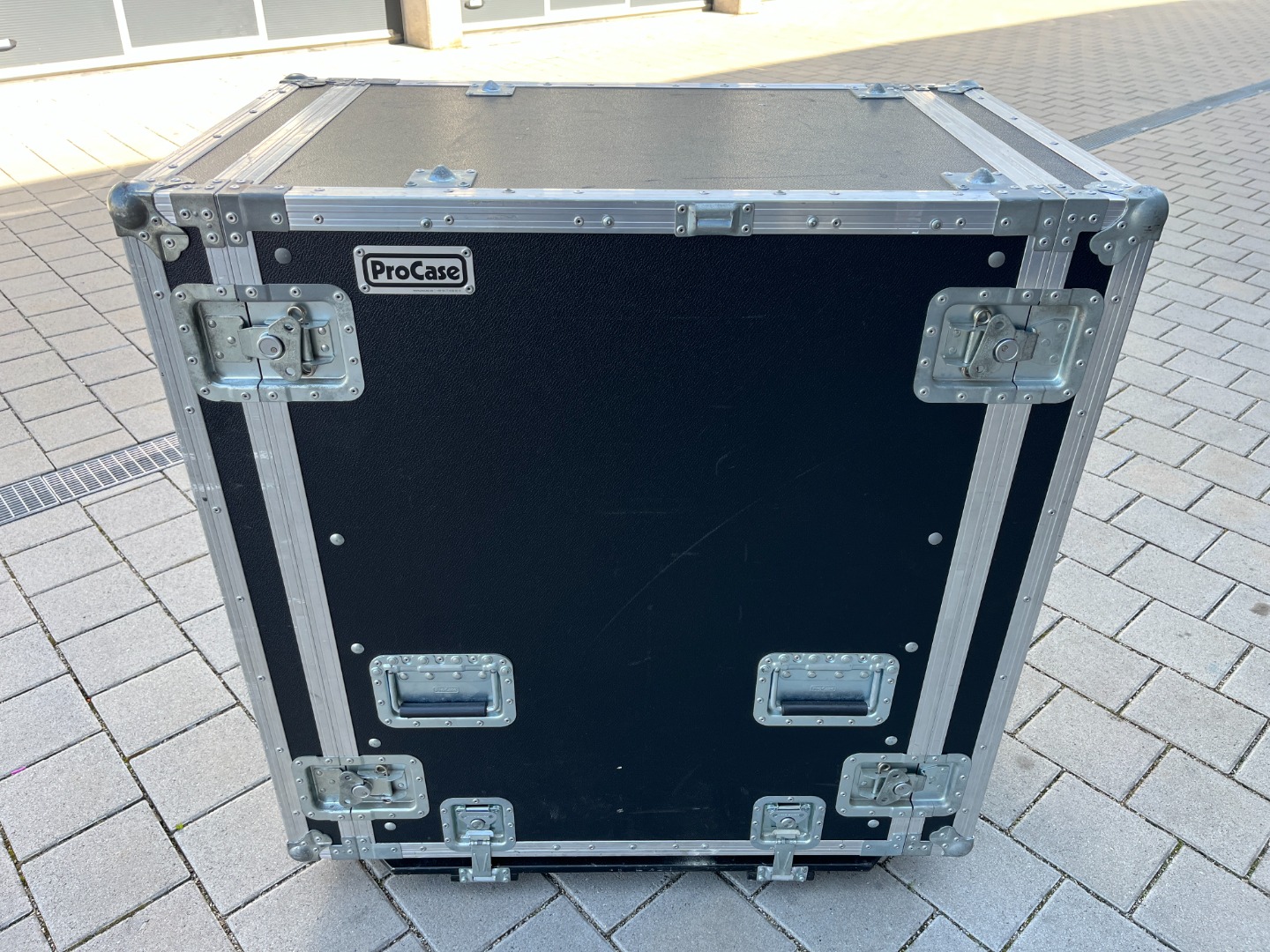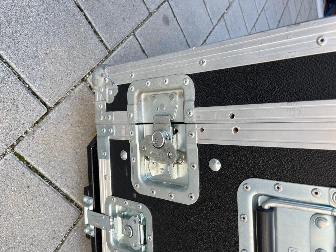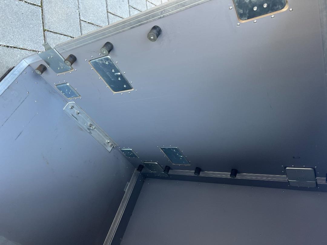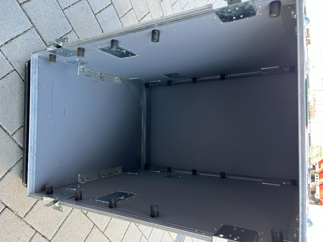 Das Case steht auf einem abnehmbaren Rollbrett mit ca. 30mm Schwerlastrollen.