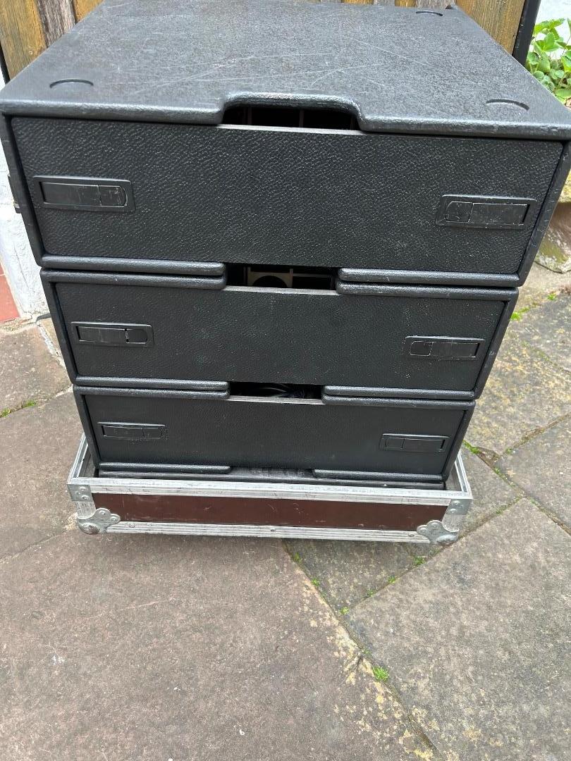 Ich biete hier eine gebrauchte, sehr gut erhaltene d&b Audiotechnik D12 - EP5 Endstufe an. Sie funktioniert einwandfrei und kann sofort eingesetzt werden. Dazu gehört ein Power Cable. Das 3 HE FlexRax von Amptown mit Deckel hinten, was Sie auf dem Foto sehen, ist nicht Bestandteil des Angebots. Ich verkaufe diese für 120 Euro das Stück, es können bei Bedarf mehrere erworben werden alle in einwandfreiem Zustand. Passend zu den Amptown FlexRax gibt es Haubencases, in die die Tax übereinander gestellt werden. Die Haube hat vorne ein Sichtfenster über die gesamte Höhe, so dass man von außen sieht was sich im Transportcase befindet. Diese Cases biete ich zum Stückpreise von 285 Euro an.