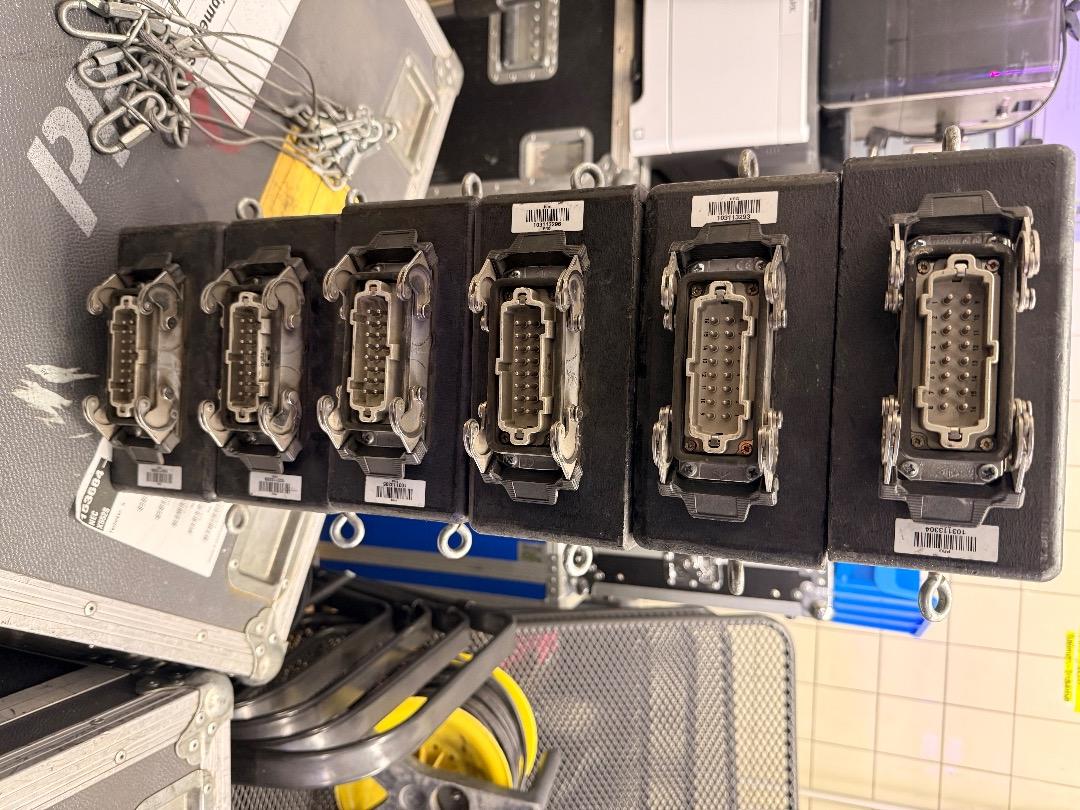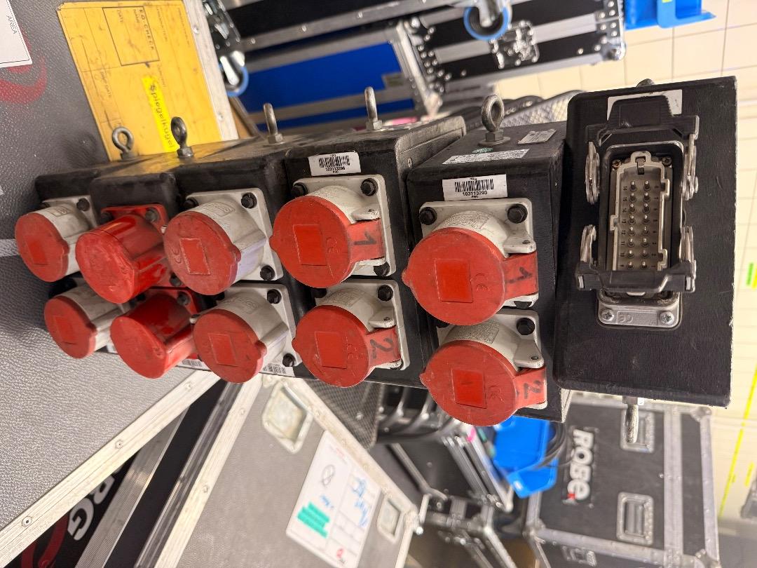 Verkauft werden bis zu sechs Plugboxen mit Harting (mit Arretierung) Anschluss auf 2x CEE16A (5-Polig).