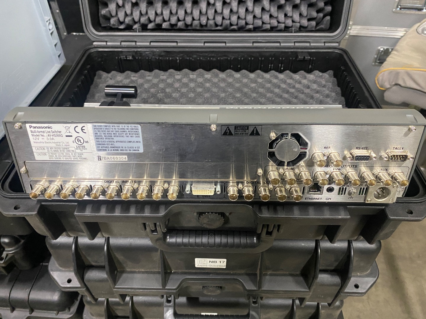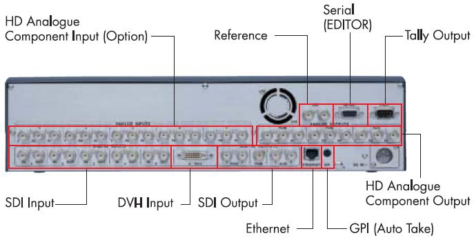 Multi-format video switcher designed for both HD and SD signals, operates properly, and shows minimal usage. It does not include a power supply but requires a standard 4-pin XLR 12V PSU.